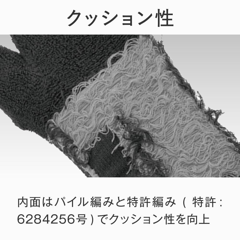 足裏の縦横アーチを支えるテーピング編み。内面はパイル編みを特殊編みでクッション性を向上。
