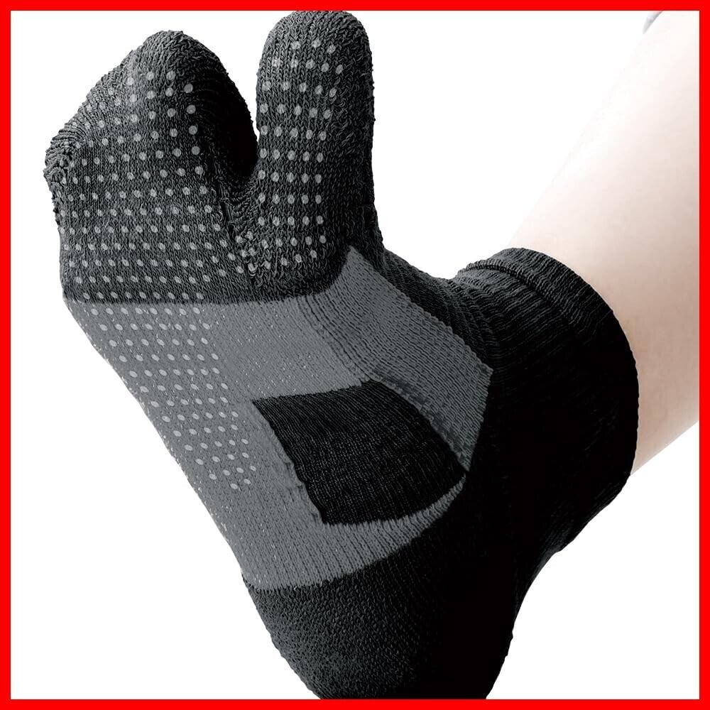 動きの起点となる拇指球に力が入る特殊な編み構造。親指に力が入りやすい足袋型。足指部分には地面を掴むシリコーンプリント。