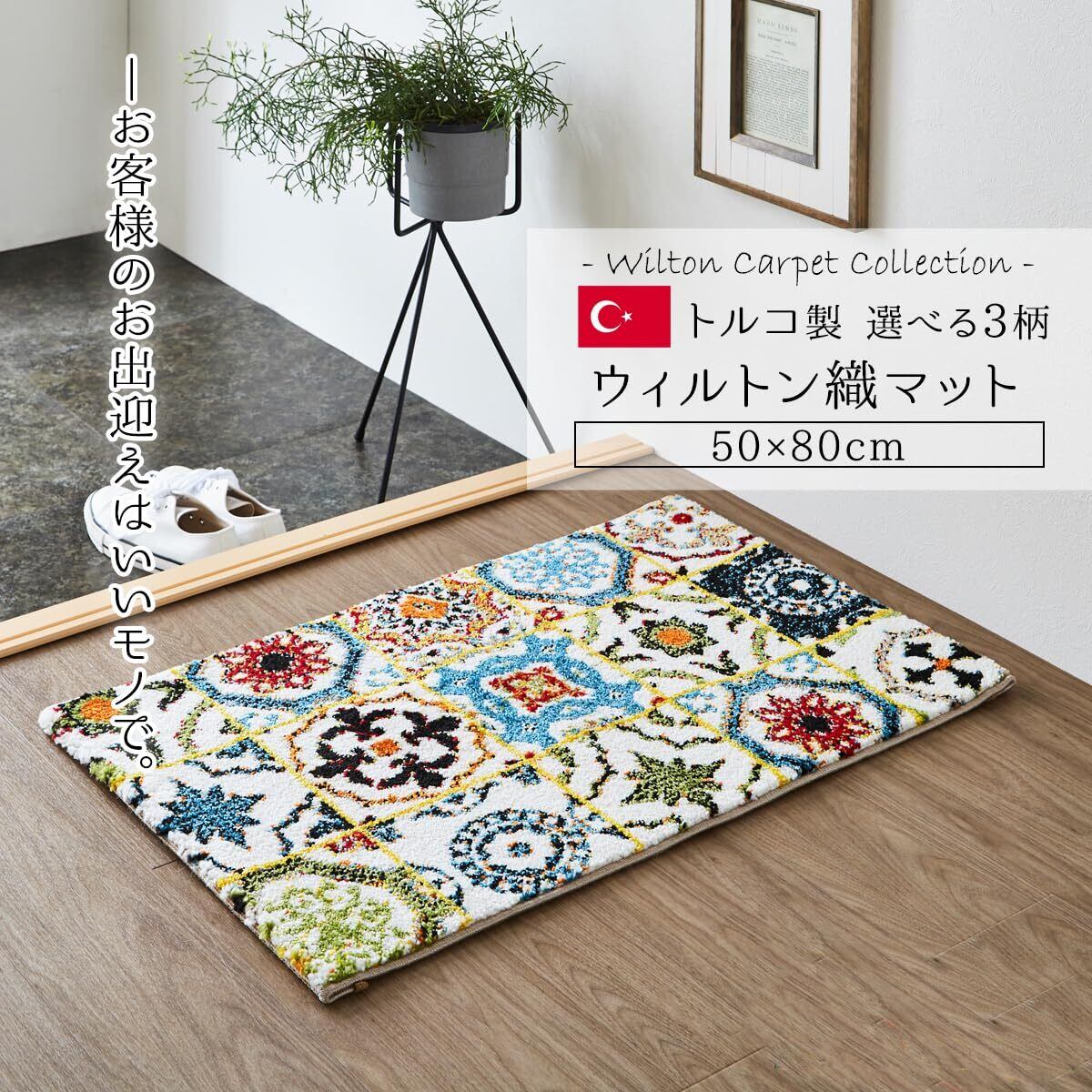 イケヒコ 玄関 選べる マット ラグ ウィルトン 単品 ダンテ アイボリー 約50×80cm 厚み 約15mm トルコ製 へたりにくい 耐久性 弾力性 抗菌防臭 消臭 アラベスク模様 エレガント 洗濯不可 おしゃれ ふわふわ #1310960011701