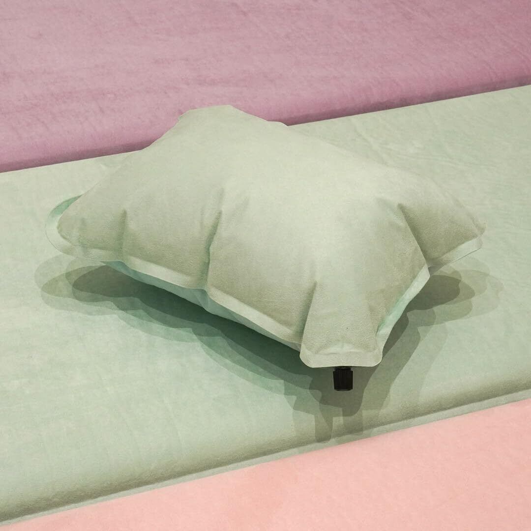 パステルカラー インフレーターピロー 枕 クッション グリーン 自動膨張 リバーシブル 収納袋付き