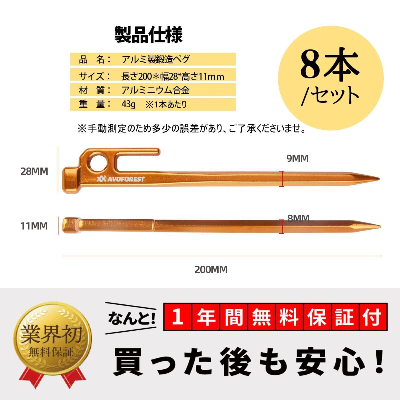 【業界初】AVOFOREST 鍛造ペグ アルミ製 ペグ キャンプペグ 20cm/25cm/30cm 4本/8本セット 一体成型 溶接なし テントペグ 超軽量 高強度 錆びにくい テント用 タープ用 アウトドア/キャンプ 用品 岩場 砂浜 砂利 硬い土 芝生