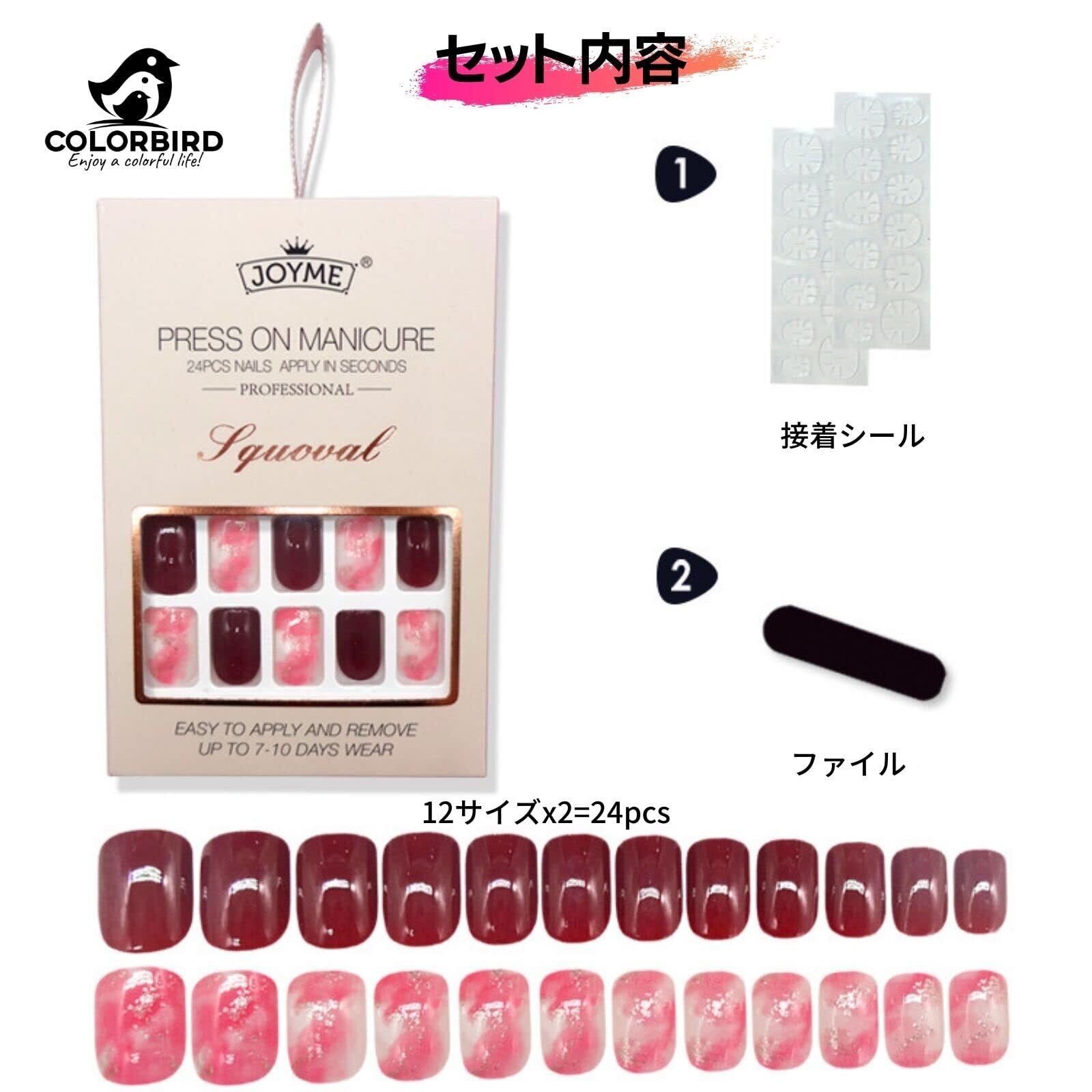 ネイルチップ JOYME 24 スクエアオフ 24枚 エレガント 母の日 結婚式 マニキュア 大人 可愛い つけ爪 (A46)