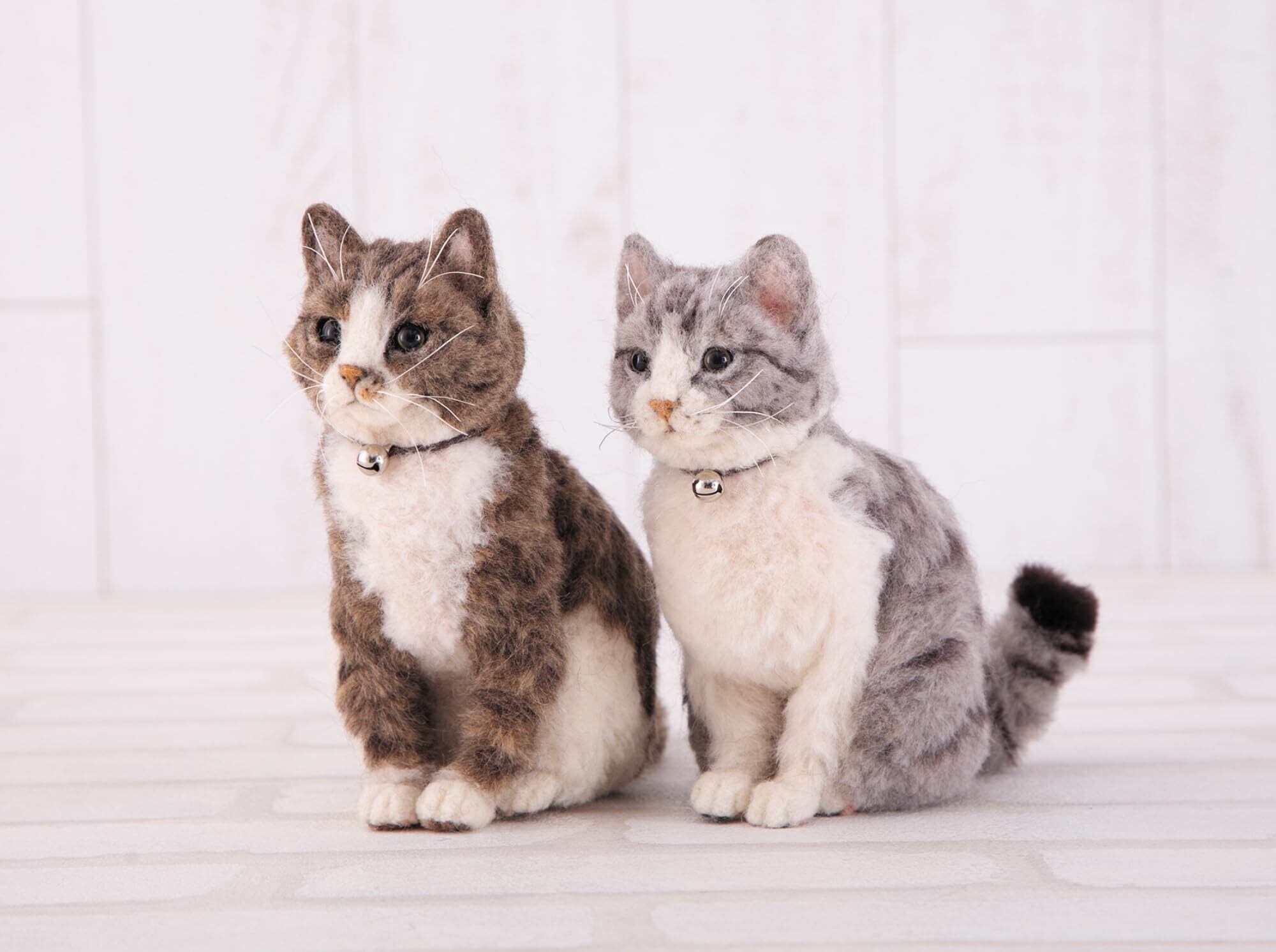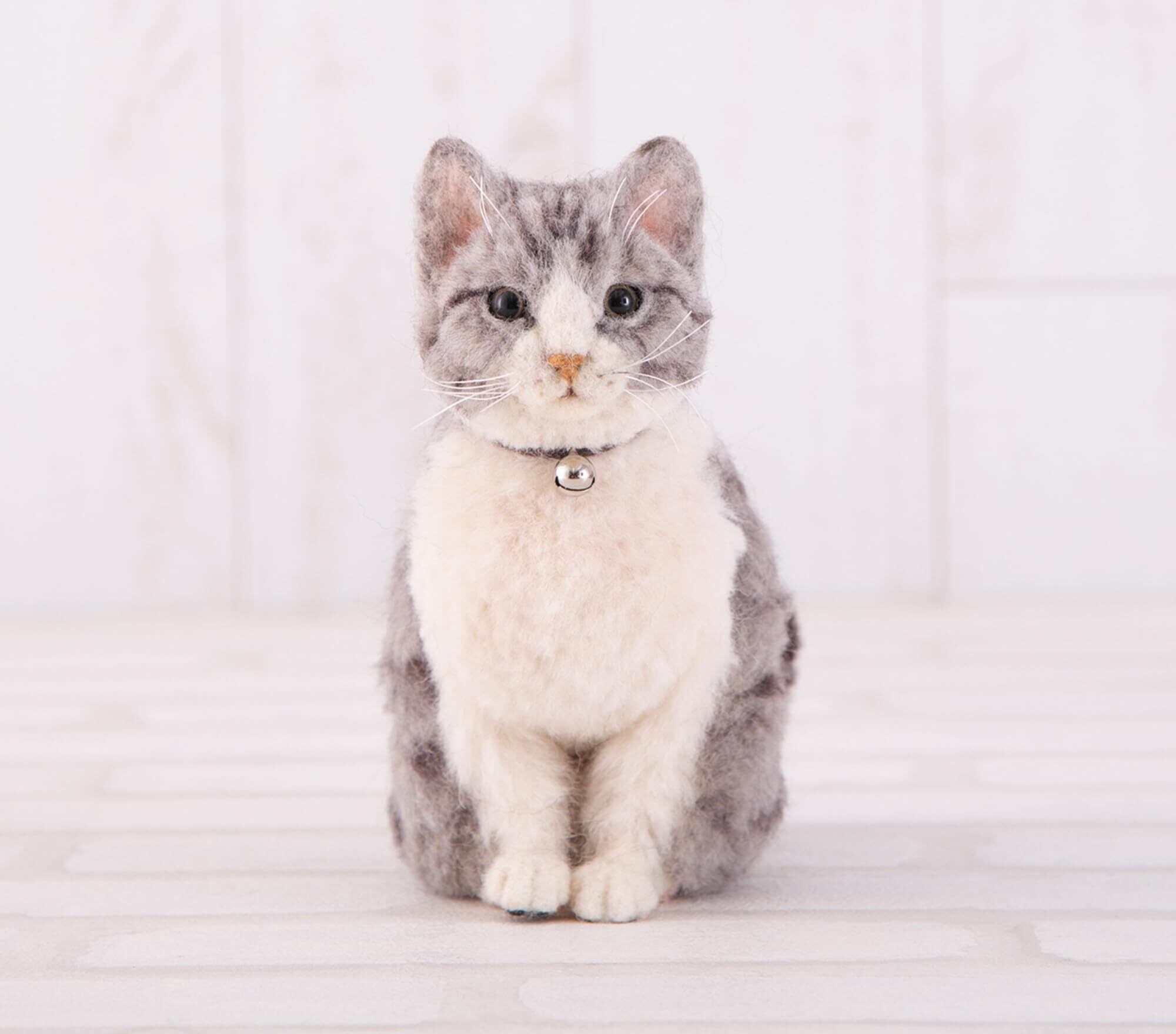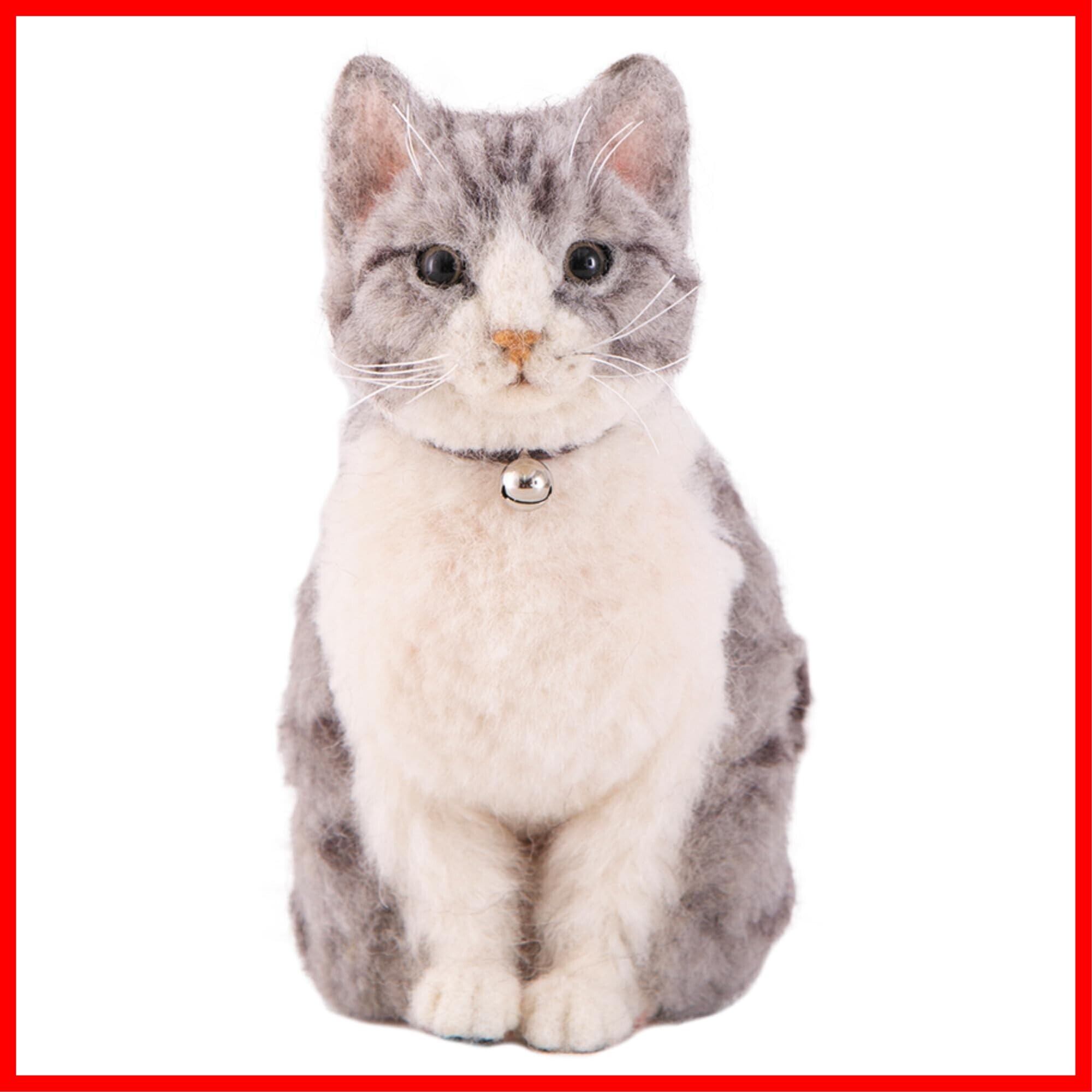 ハマナカ フェルト羊毛 キット ニードルフェルト でつくる 植毛 レッスン キット サバトラ (サイズ高さ約 16㎝) 植毛ポイントを動画でサポートQRコード付 H441-646 | hananoki