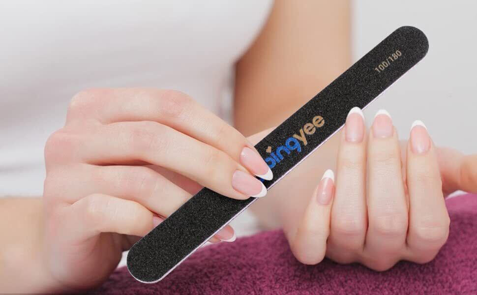 100/180両面爪やすり:ネイルやすり100グリットは粗く、爪からジェルを取り除くのに役立ちます. 木目180側は細心の注意を払っており、爪のエッジをカットして形状を洗練するのに役立ちます.