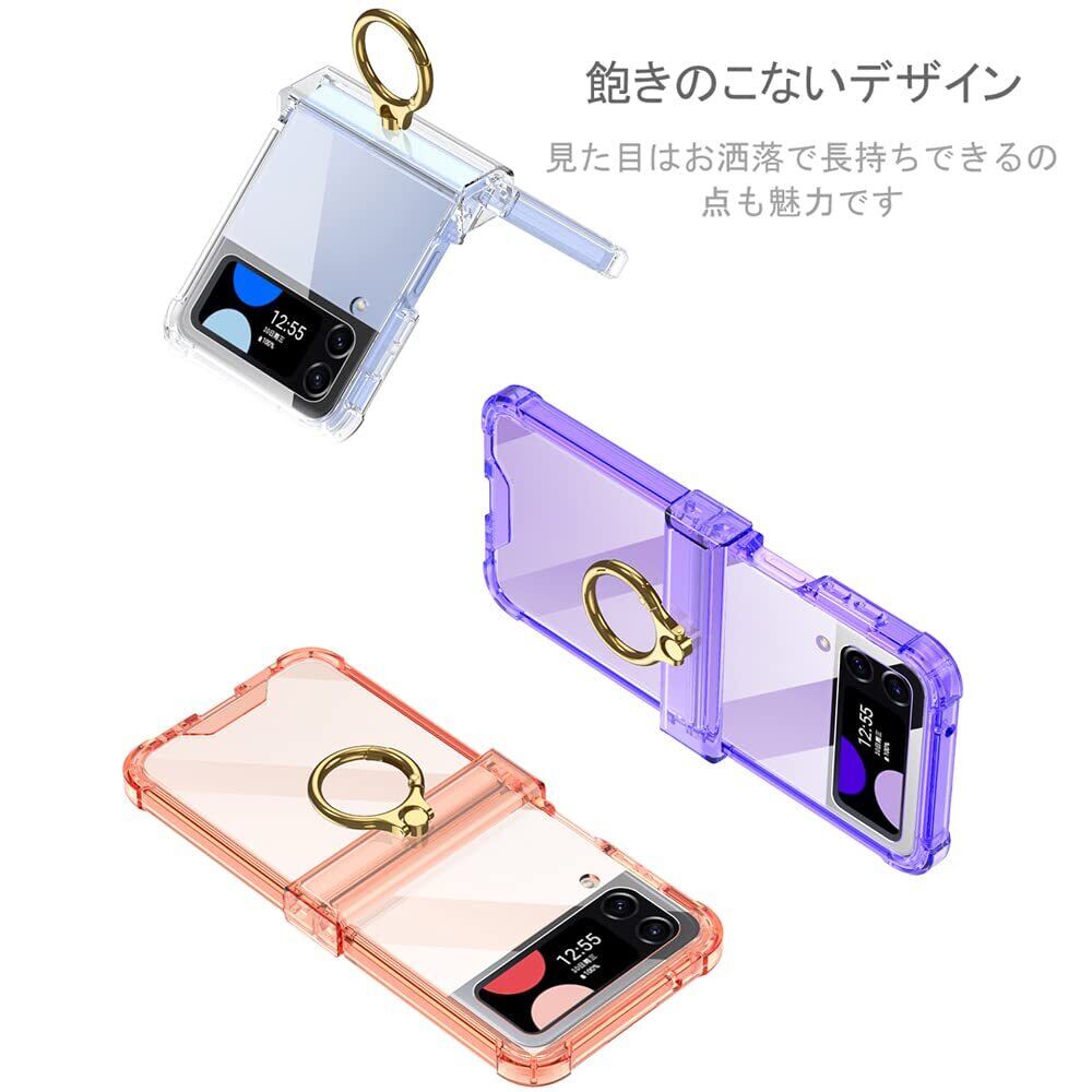 Galaxy Z Flip4 ケース クリア Samsung ギャラクシーZ フリップ 4 / docomo SC-54C / au SCG17 用 カバー リング付き ヒンジ保護 Uovon スマホケース 耐衝撃 スタンド機能 超軽量 超薄型 黄変防止 おしゃれ・クリア