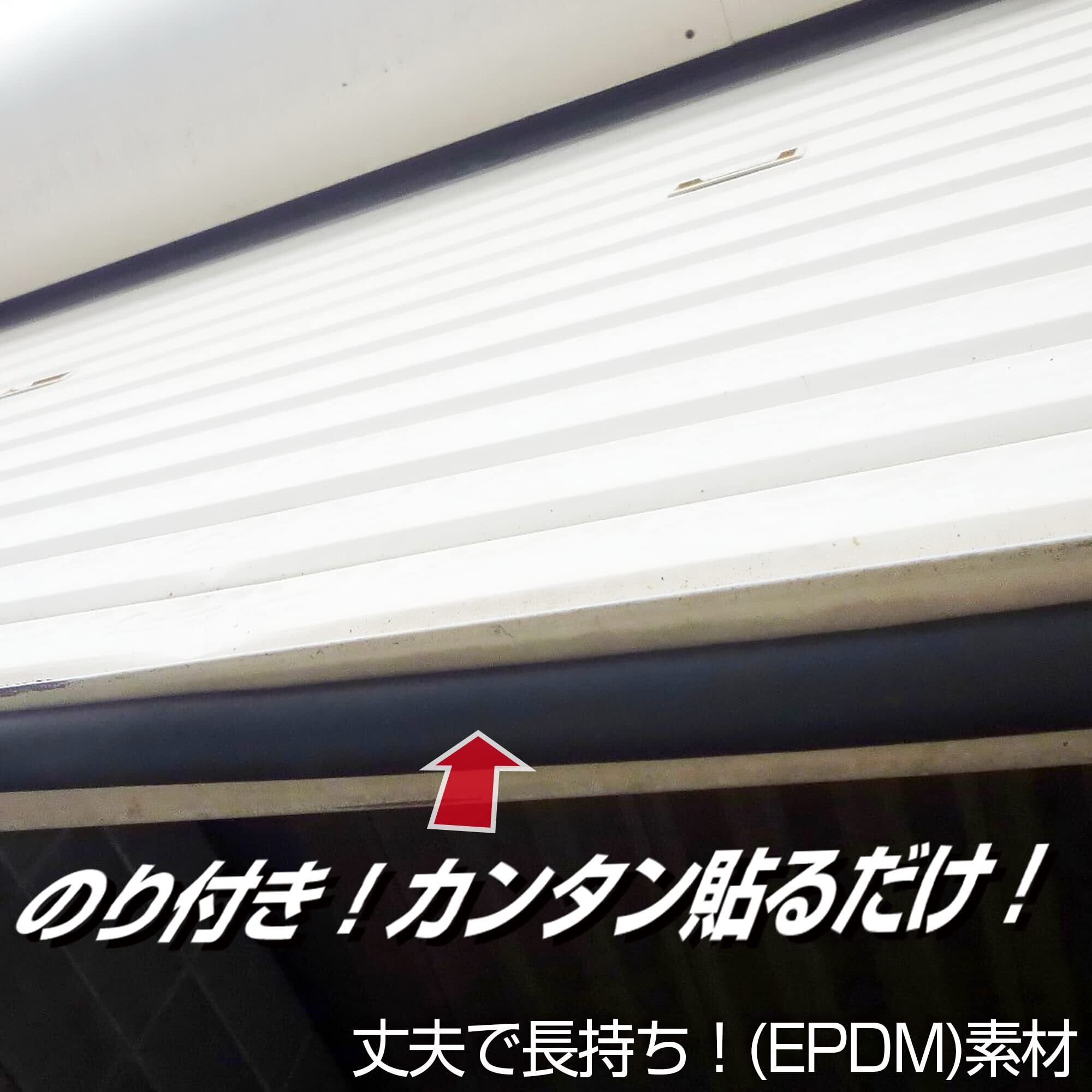 ●シャッターと地面の隙間を塞さぎ、雨・風・ホコリやゴミ・虫等の侵入を防ぎます!●柔らかい素材だから、凸凹のある地面にフィット!!●のり付き!カンタン貼るだけ!●皮膜がついた丈夫な(EPDM)素材だから長持ち!●シャッターと地面とすき間防止に。●火気、高温になる場所で使用したり、保管しないでください。●停止装置などのセンサーがついてる特殊なシャッターでは使えない場合があります。●凹凸面、ザラザラ面、塗装が剥がれやすい面などでは、テープがつかない場合があります。●使用する前に、貼り付ける面のホコリや汚れをきれいに拭き取ってください。●5℃以下の低温時では本来の粘着力が弱くなり、つきにくくなります。●長すぎる場合ははさみ等で切って長さを調節してください。
