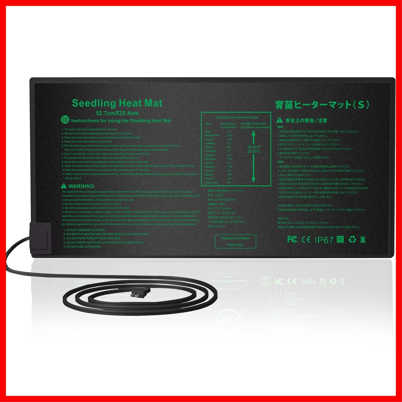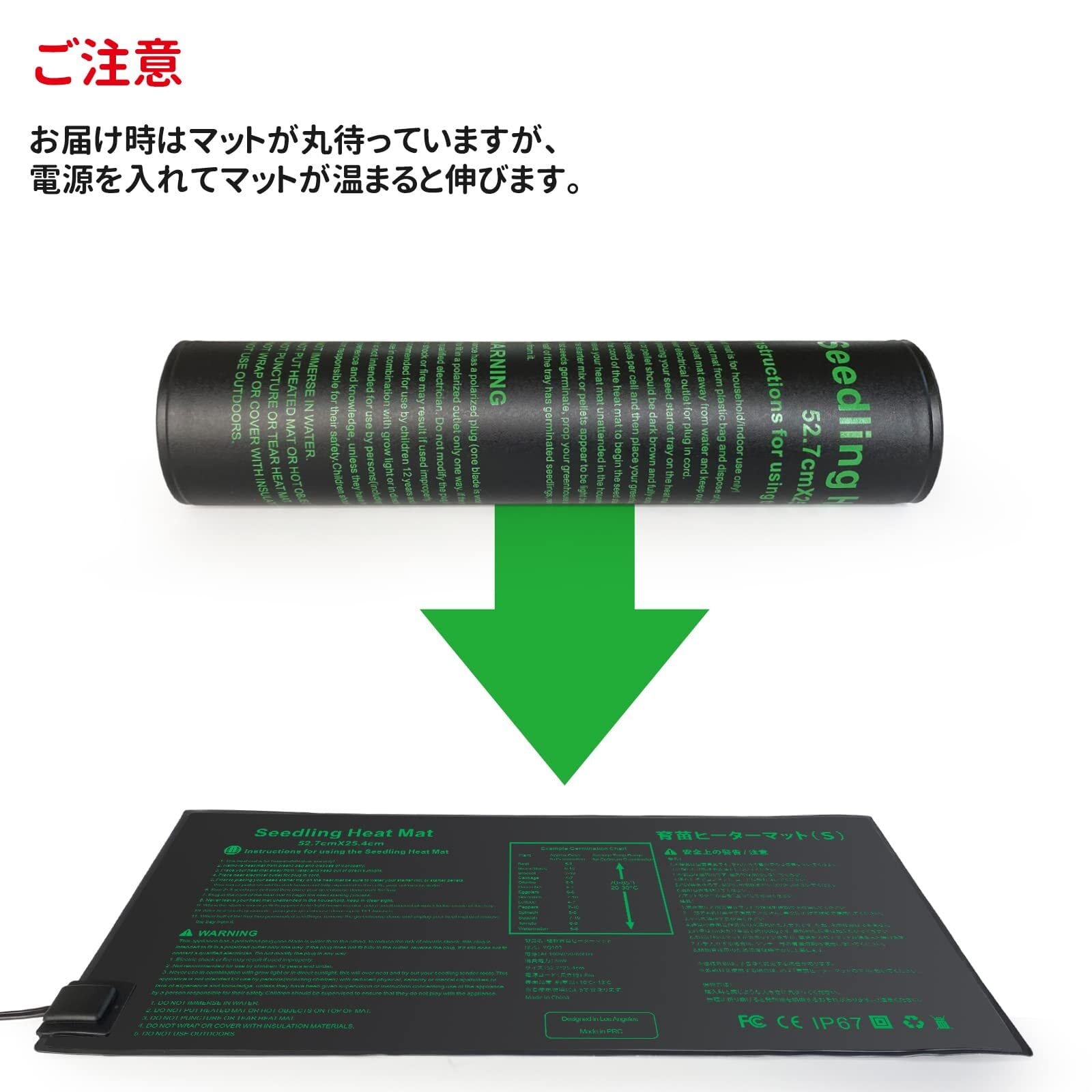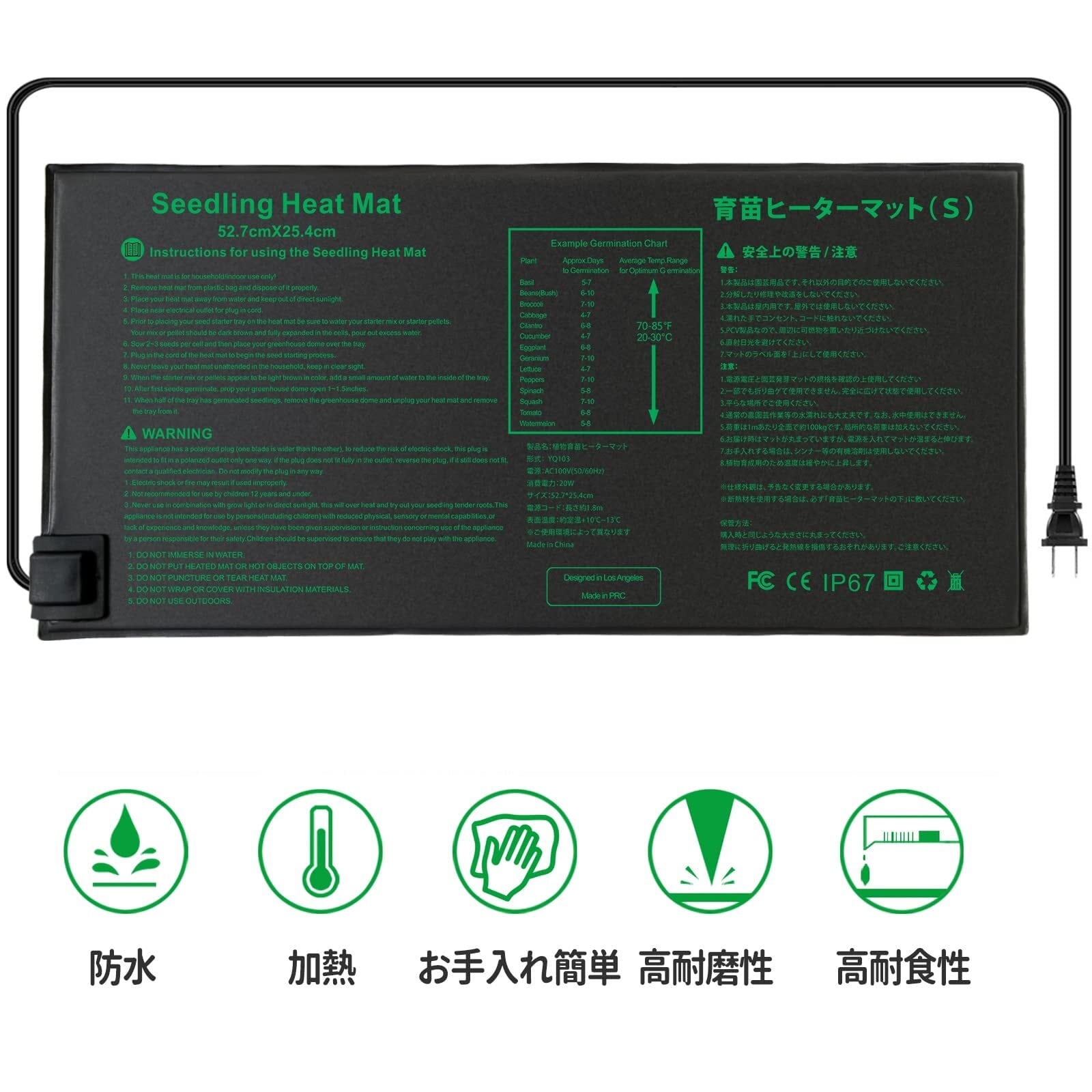 園芸発芽マット育苗器 ヒーターマット植物加熱用 育苗マット 園芸用ヒーターマット 温床関連 室内栽培 横53×縦25.5cm