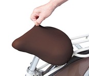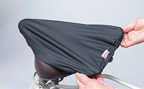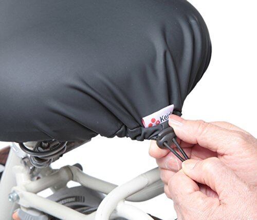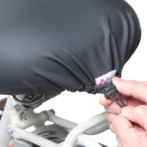 電動アシスト車の大型サドルにも対応。ストレッチ素材を使用しているため、様々なサドルにぴったりフィットします。