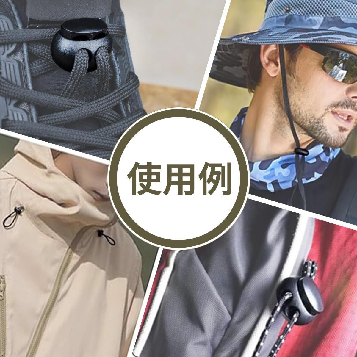 【使用例】 リュックサック:リュックの開閉部分に使用して、簡単に開け閉めができるようにします。 衣類:ジャケットやパンツの裾のゴム部分に使用し、フィット感を調整します。 帽子:ヒモ部分を固定する事で、頭から帽子がズレ落ちるのを防ぎます。 手芸:手作りのバッグやポーチなどの紐の調整に活用します。 その他にも、アイデア次第で様々な活用方法がございます。”お徳用10個入り”なので、様々な日常用品にご活用いただけます。