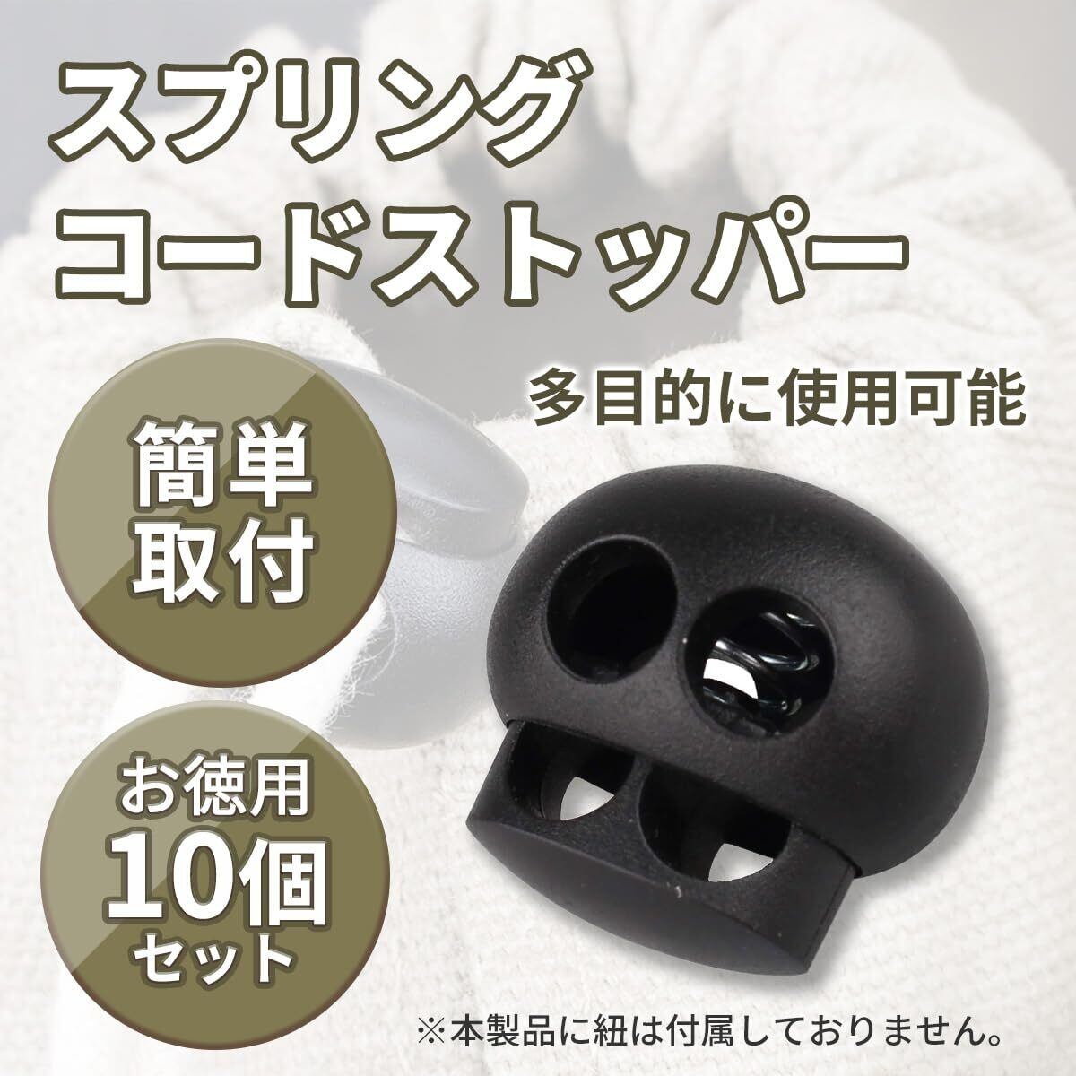 スプリングコードストッパー 2つ穴 穴径 6mm 黒 10個入り 紐止め コードロック トグルストッパー ブラック