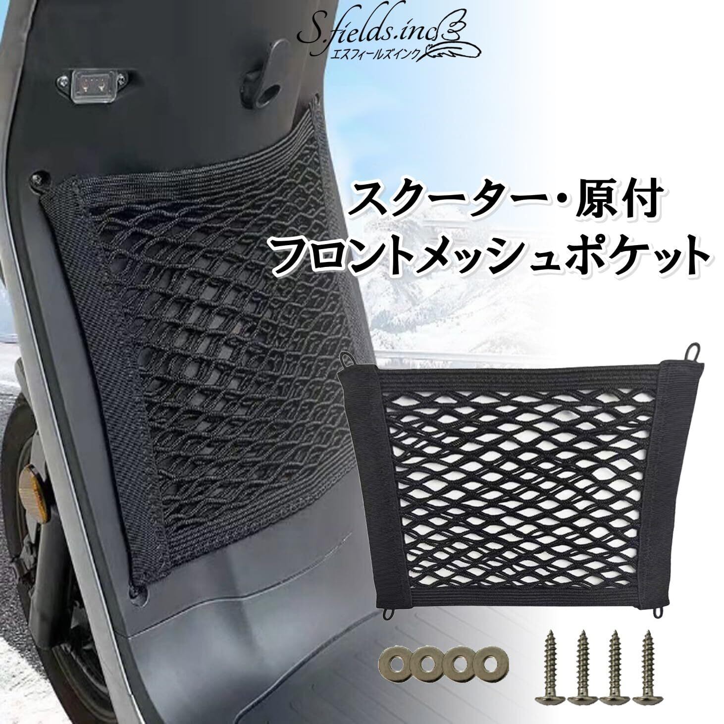 S.fields.inc スクーターポケット 原付 フロントポケット 荷物ネット メッシュポケット バイク オートバイ