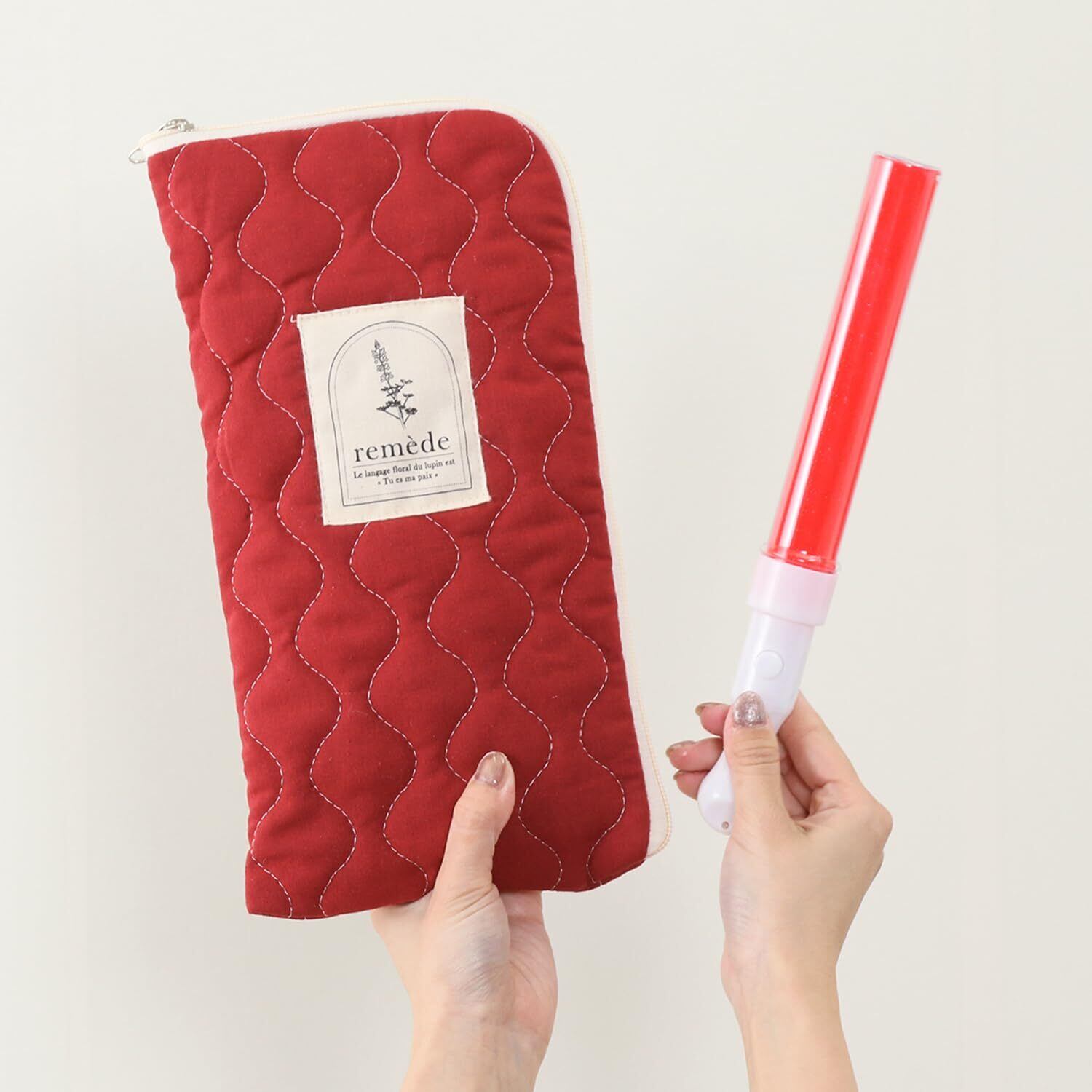不二貿易 推し活グッズ ペンライトケース ペンラケース 幅16×奥行1×高さ30cm レッド キルティング 推し活 収納 メンカラ 推しカラー 内ポケット付き remede ルメッド 53923 18750 | hananoki