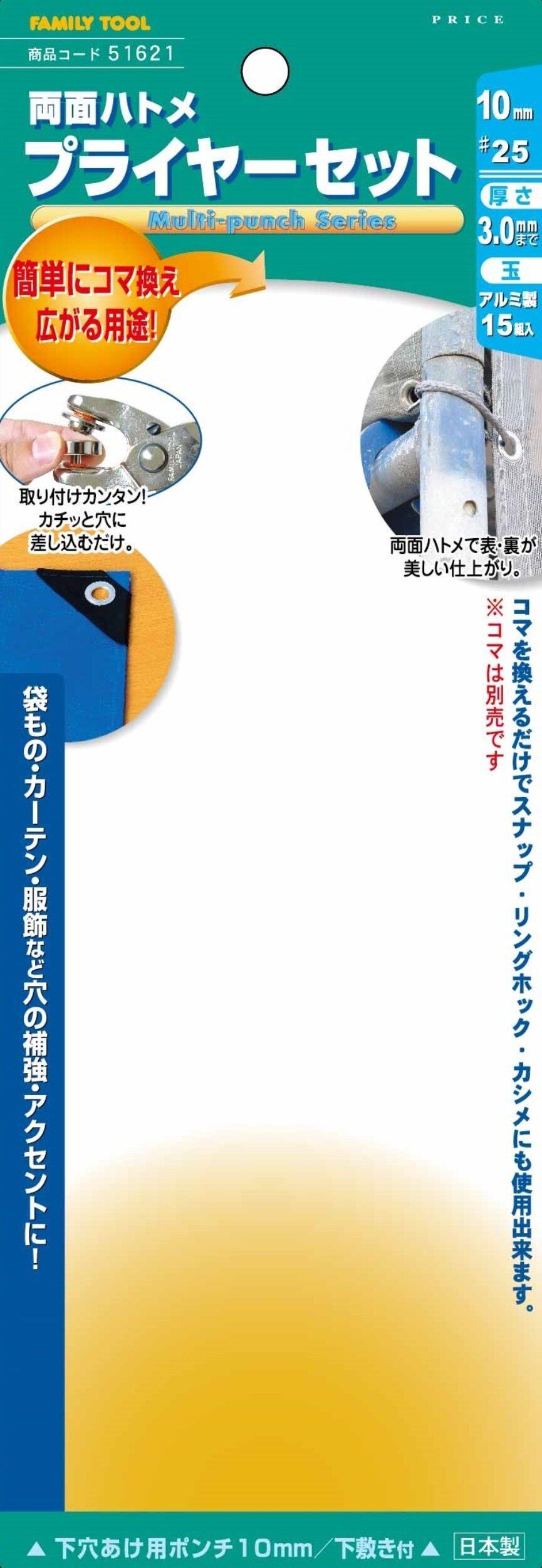 イチネンアクセス ツール事業部 FAMILY TOOL(ファミリーツール) ハトメ 両面ハトメ プライヤーセット 51621 10mm(#25) アルミ製 15組入