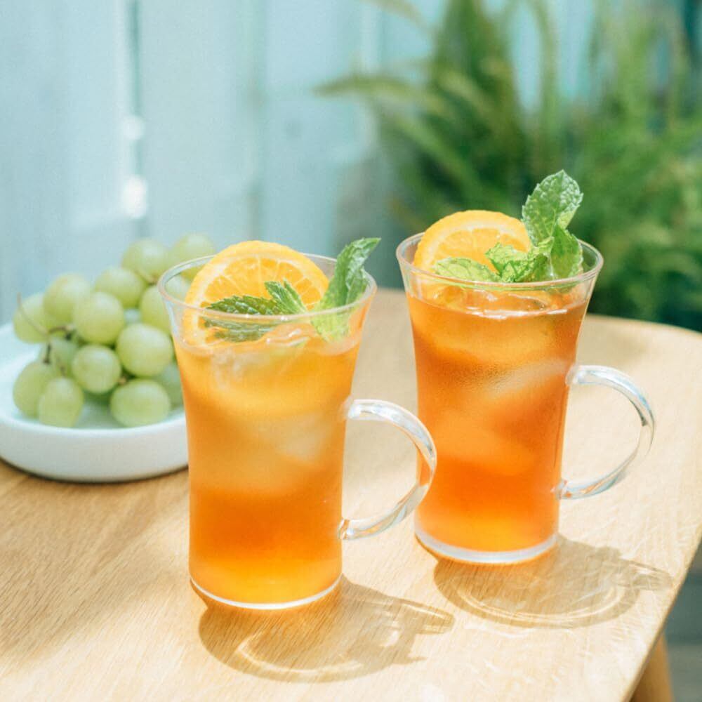 耐熱ガラスなので、アイスドリンクもホットドリンクにも使えます。持ちやすい軽さのユニバーサルデザインタンブラー。