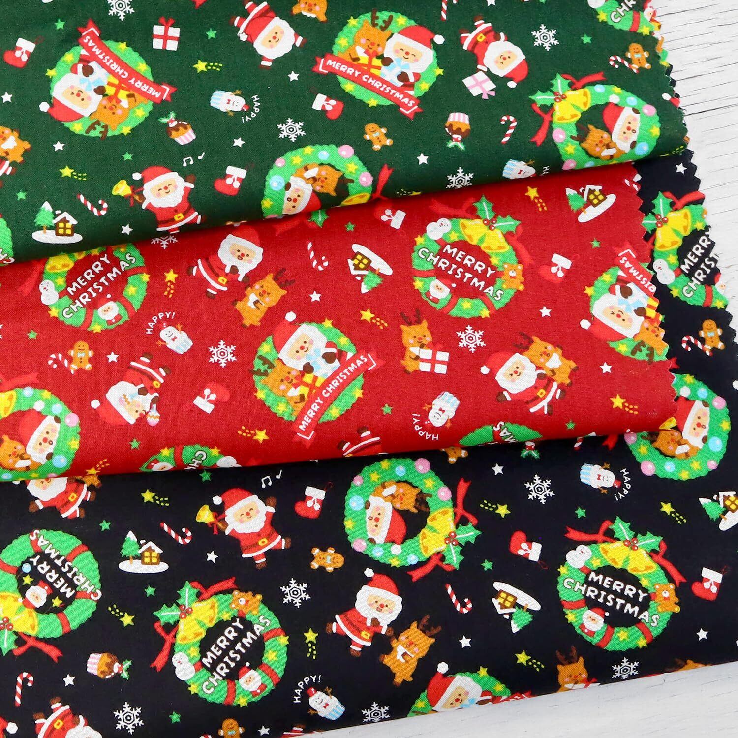 Christmas Collection クリスマスプリント生地 サンタとリース柄 巾110cm×50cm切売 Aグリーン AP45102-1A