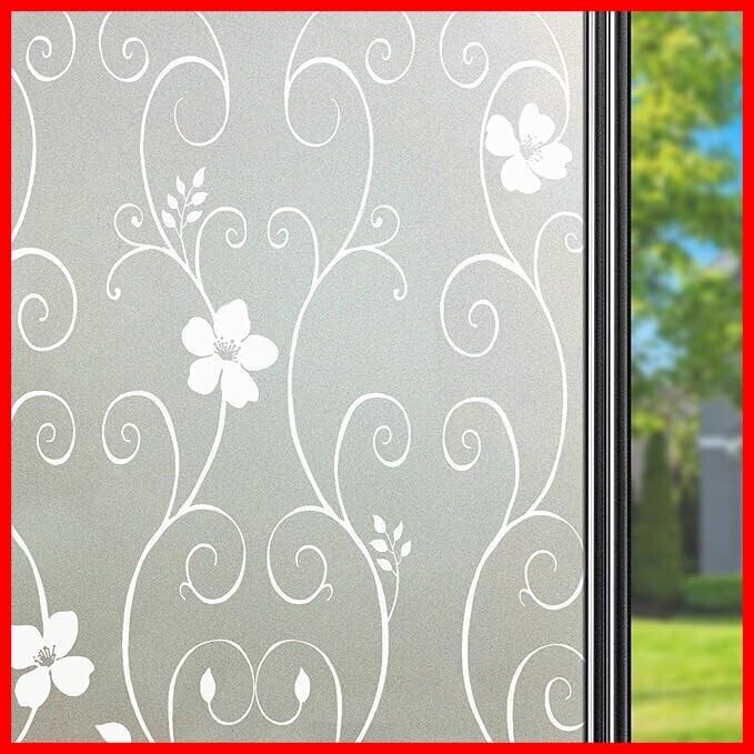Qualsen 窓ガラス目隠しフィルム ステンドグラス シール 窓用フィルム すりガラス調 目隠しシート めかくしシート すりガラス調 白花柄 静電気吸着タイプ UVカット 貼り直し可能 おしゃれな目隠しフィルム 装飾フィルム おしやれ 寝室 玄関 窓 断熱 遮光 飛散防止 台風対策