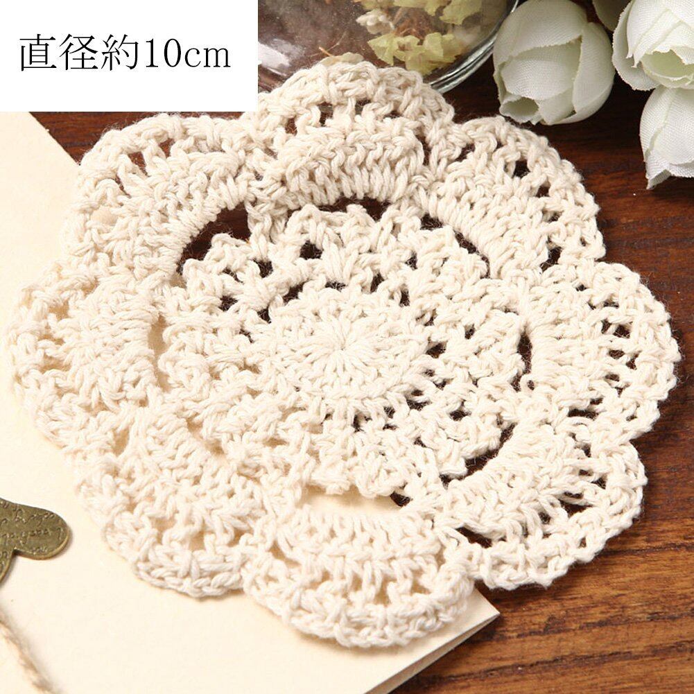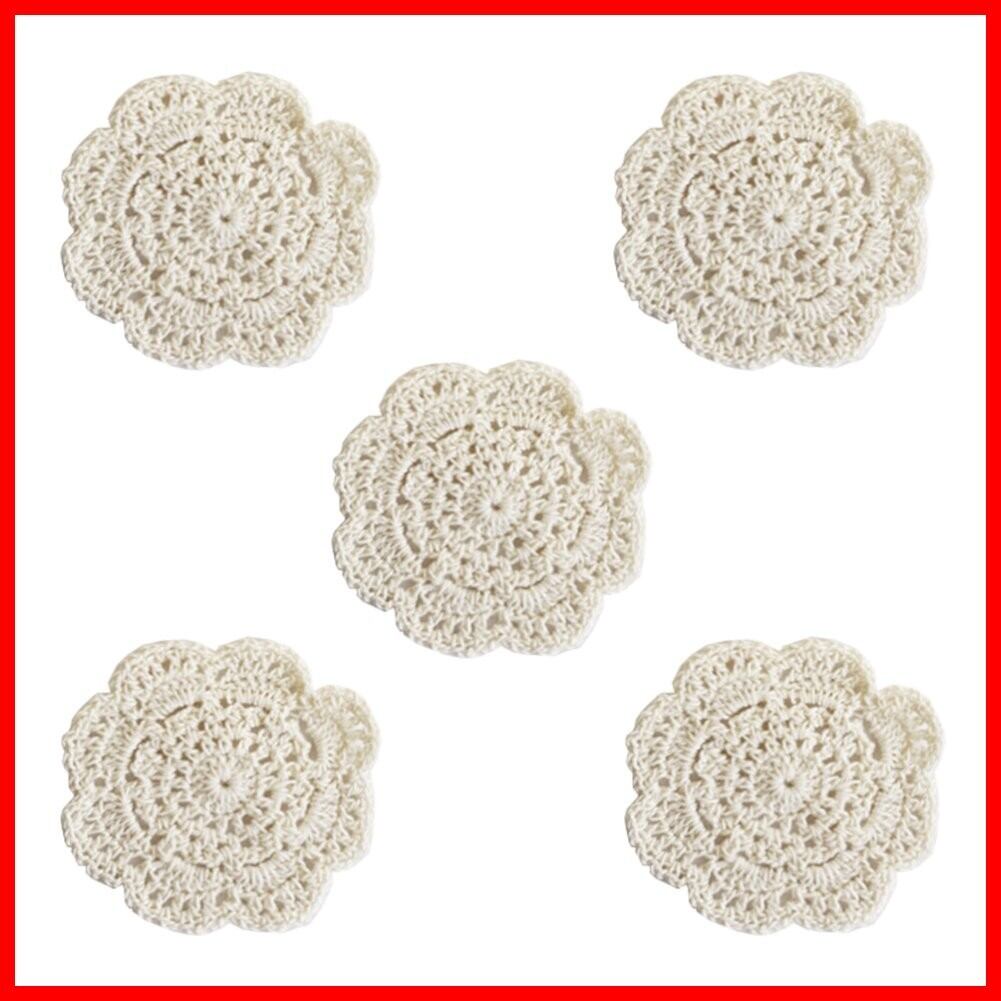 コットンかぎ針手編みコースター 欧風コースター 断熱パット ランチョンマット 鍋敷き かぎ針手編み 吸水 洗濯可能 コットン糸 ベージュ (B-5個入)