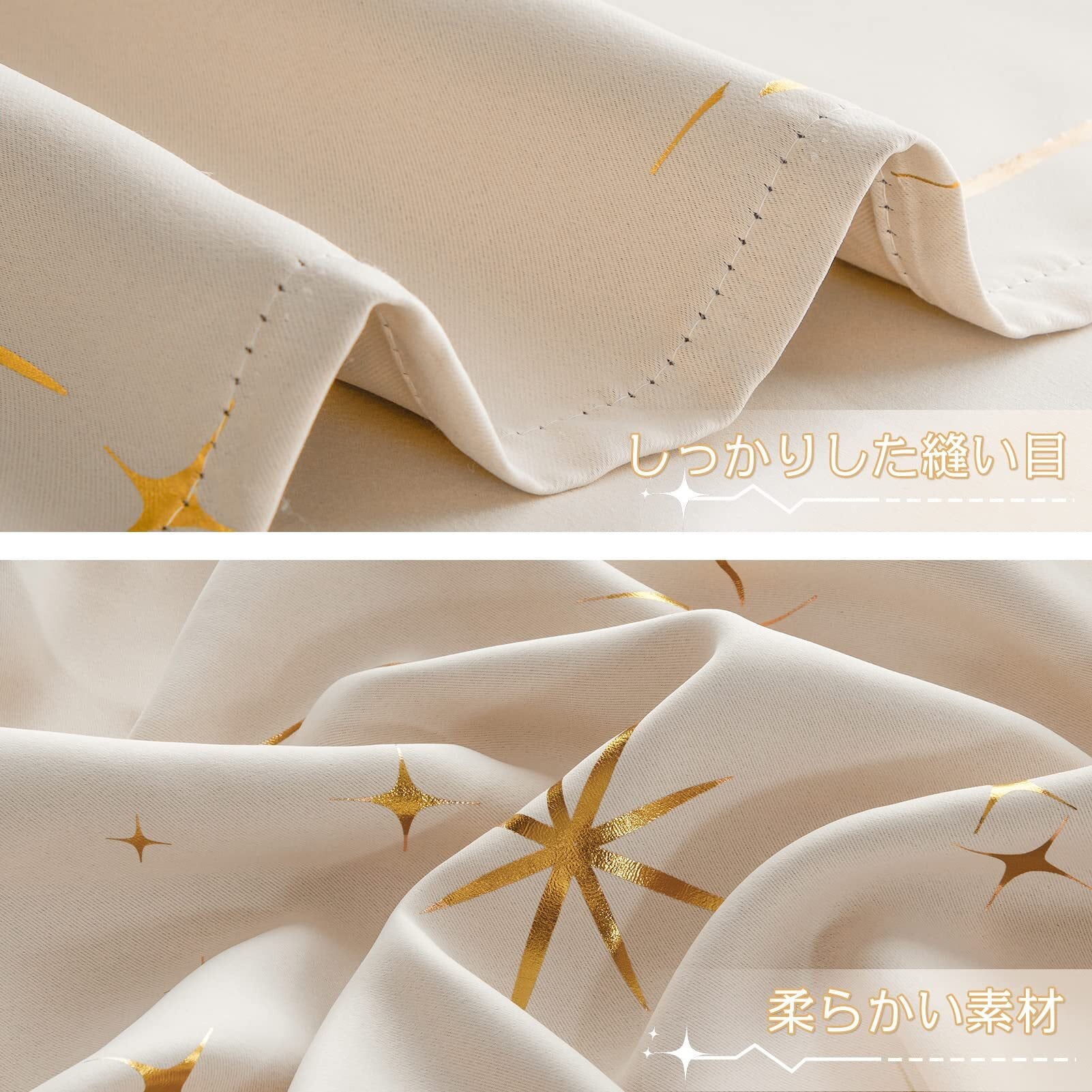 カーテン 遮光 おしゃれ 星柄 箔プリント 遮光カーテン 110cm丈 2枚組 ベージュ 小窓 カフェカーテン 省エネ 断熱 寝室 防音カーテン 既成 カーテン 断熱カーテン