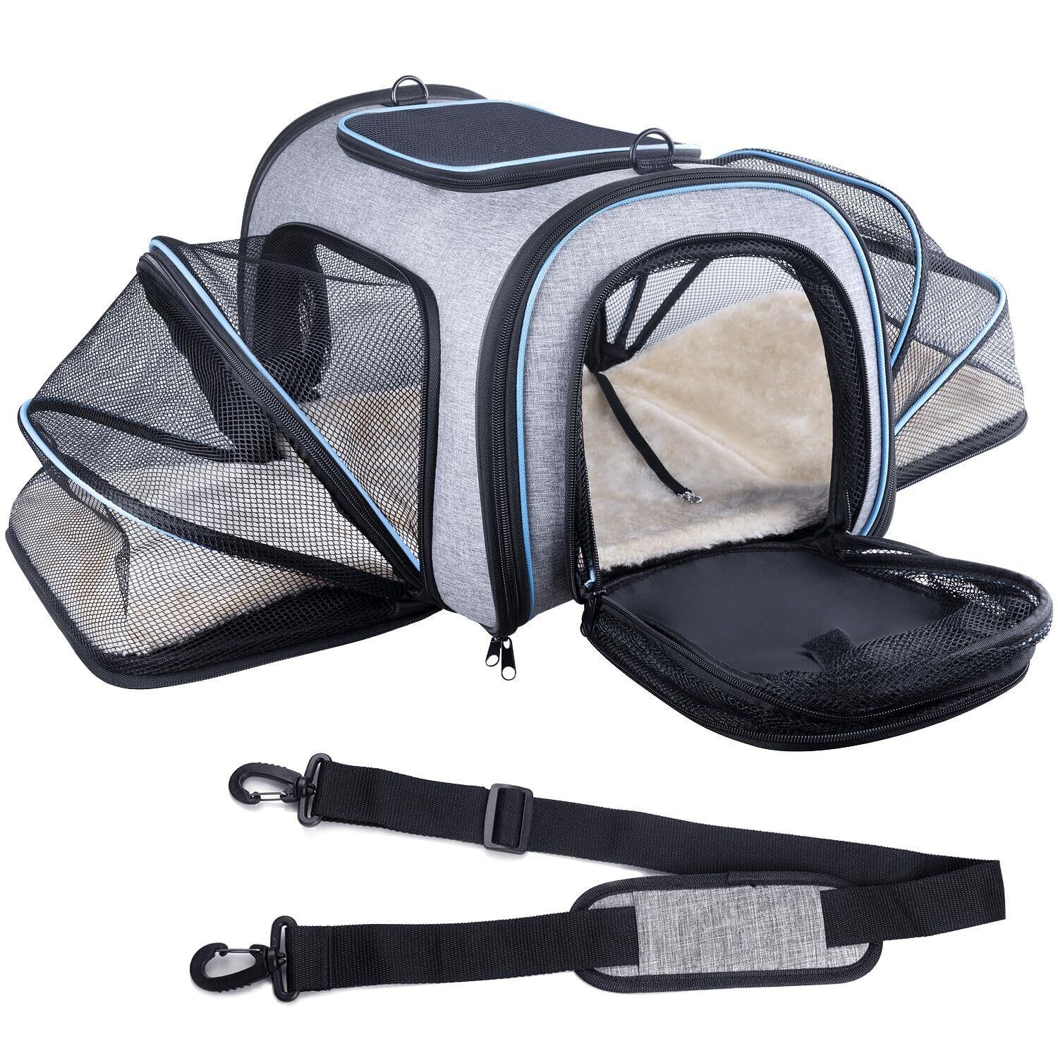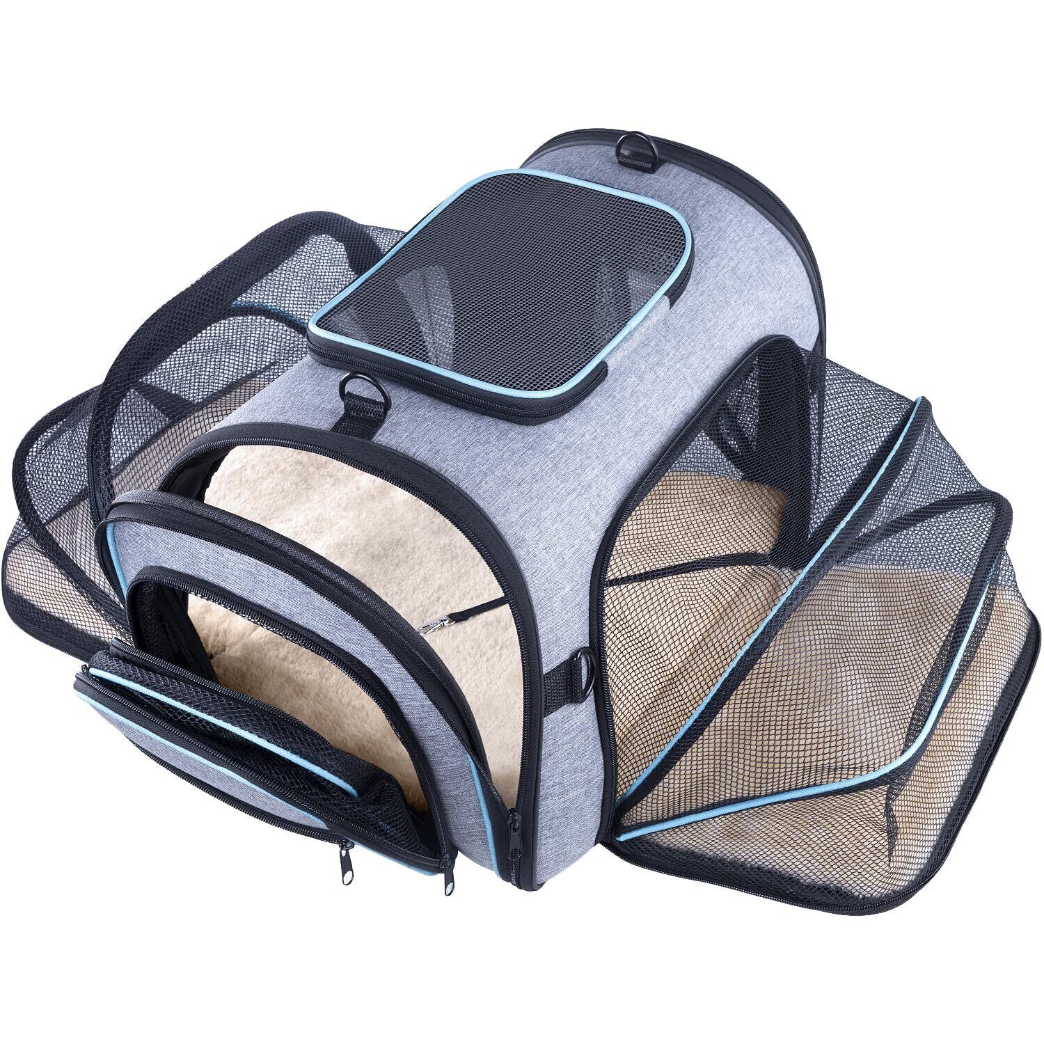 Siivton 猫キャリー 猫、子犬、小型犬用のフリースパッド付きの4面拡張可能なペットキャリ— キャリーバッグ 折り畳み可能 防災 移動用
