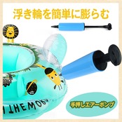 手押しエアーポンプ付属:便利な空気入れを付属しています、ピストンを上下させてシリンダー内の空気を押し出します、浮き輪が簡単に膨らみますよ、とっても便利です。
