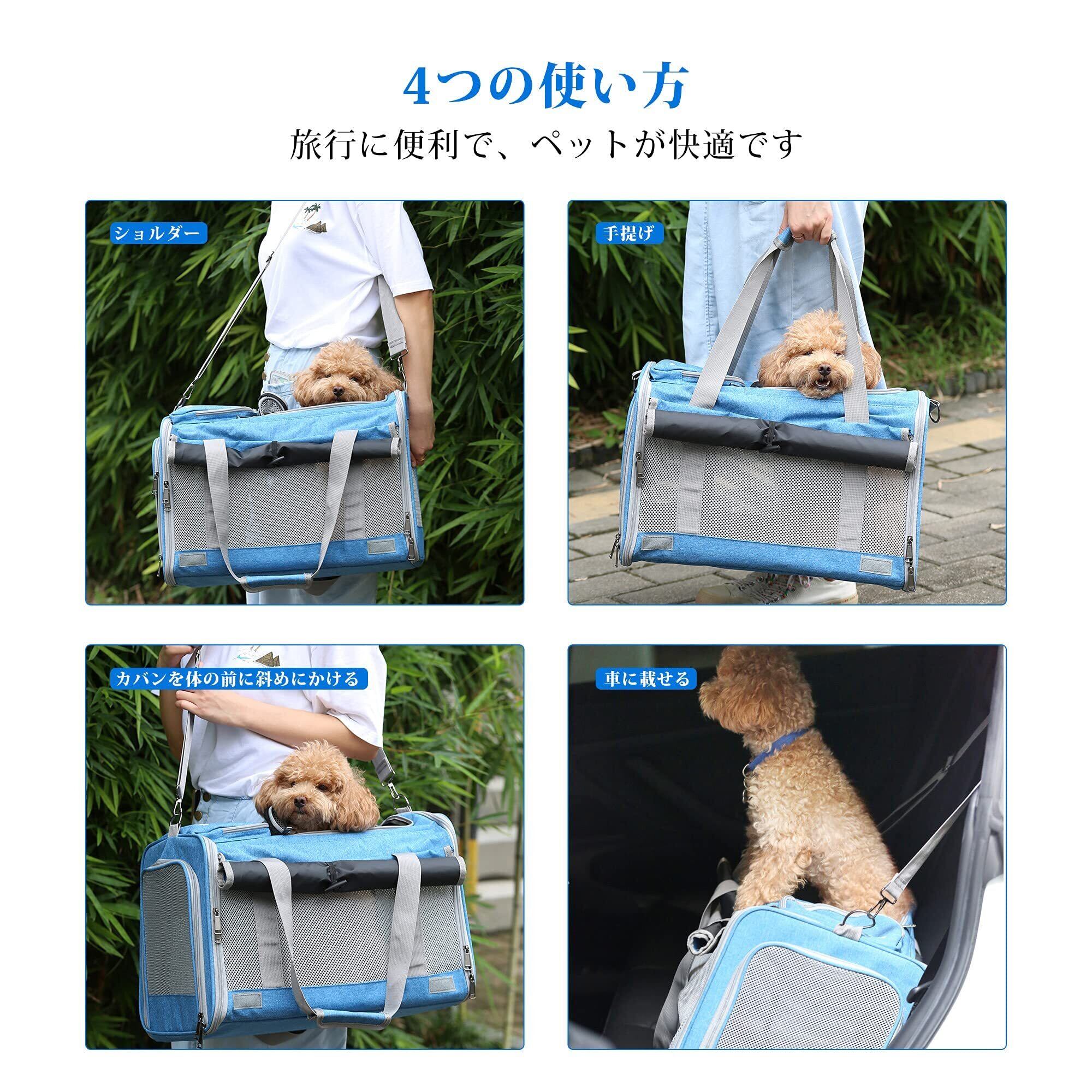 【快適、便利】 長さを調節できる肩ベルト、幅の広い肩パッド、厚みのある手提げパッドがありますので、重いペットを連れてもストレスを軽減できます。4つの使い方: ショルダー、手提げ、カバンを体の前に斜めにかける、車載。散歩、買い物、レストラン、通院、電車移動、避難などのお出かけ時に非常に役立ちます。家にいる時は、ペットの好きな巣です。