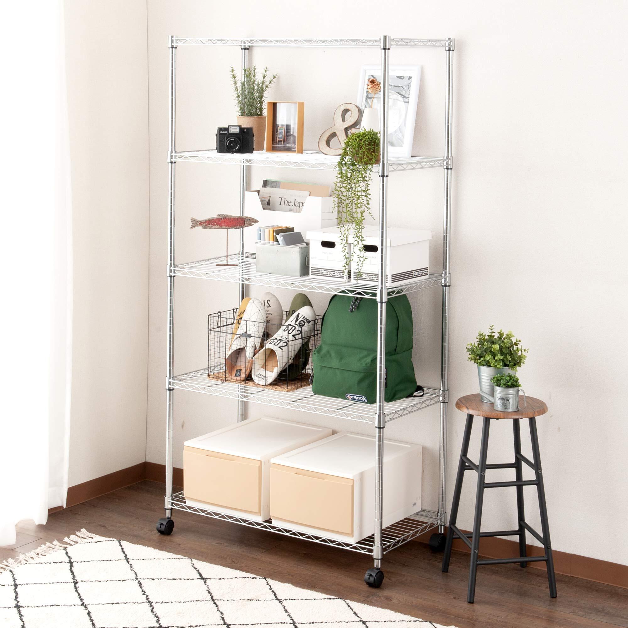 ドウシシャ 棚 ルミナス互換 メタルルミナスラック 幅90 5段 スチールラック 収納棚 幅90×奥行46×高さ180cm 全体耐荷重400kg 頑丈 キャスター付き 防錆加工 ポール径25mmパーツ対応 業務用 シェルフ キッチン収納 EL25-90185 | hananoki
