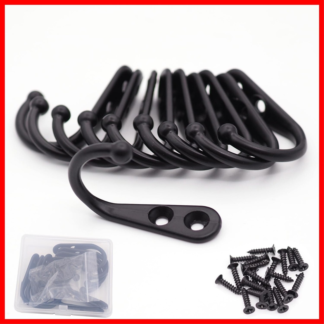 Hymyily 10個 亜鉛合金壁掛け フック アンティーク フック 高耐荷重 金具 かべかけフック キッチン 台所 壁かけ 洋服掛け (ブラック)