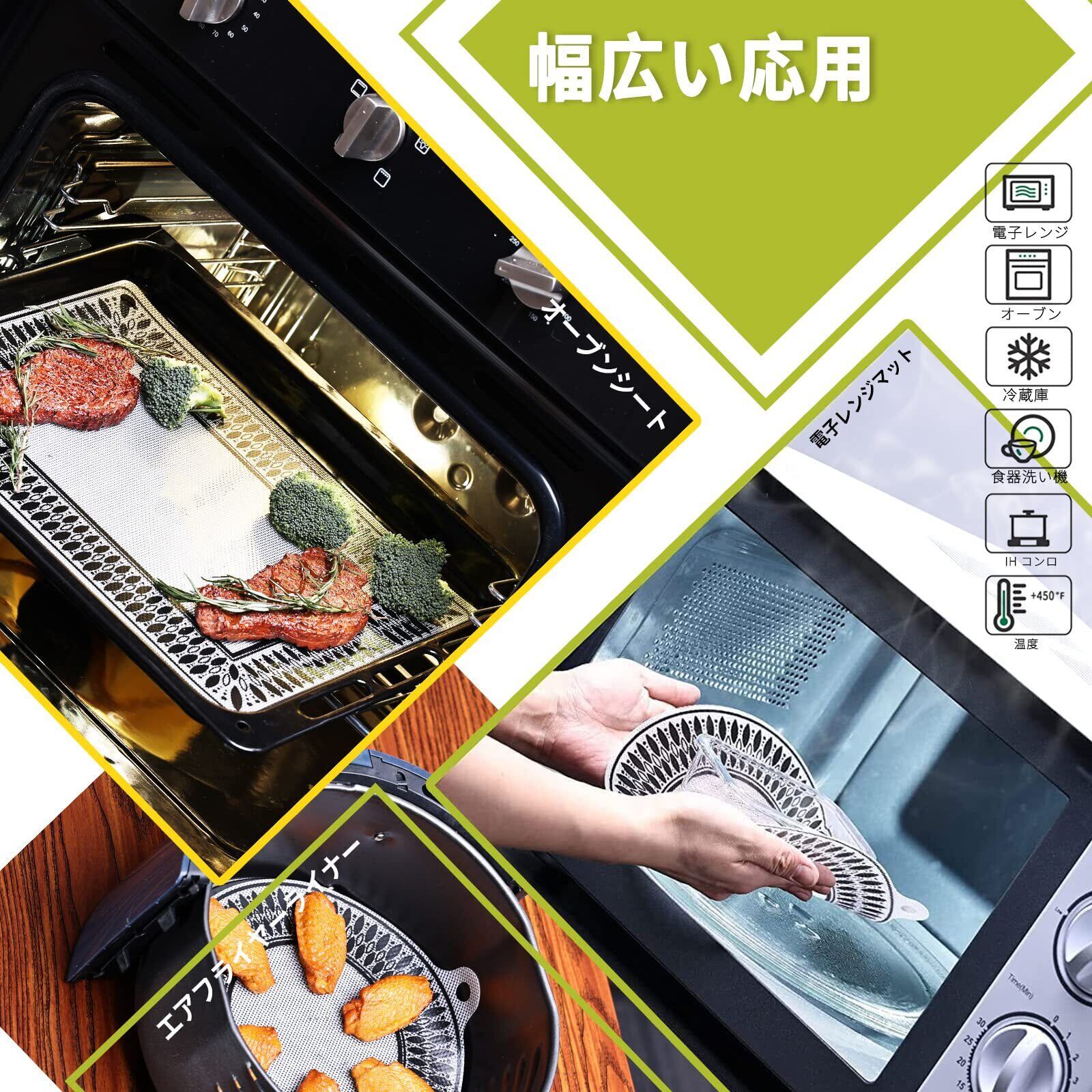 【オーブンマットとして使用】オーブン/電子レンジ/エアフライヤー/冷凍庫に安全です。ihクッキングヒーターマットは最高の食品グレードの液体シリコーンから作られており、-40から230℃までの範囲の温度で使用できます。敷きとして利用したり、エアフライヤーで下に敷いたりもできます。燃焼はできません。オーブンに入れても電子レンジに入れても大丈夫とのことで、吹きこぼれ対策にもできます。