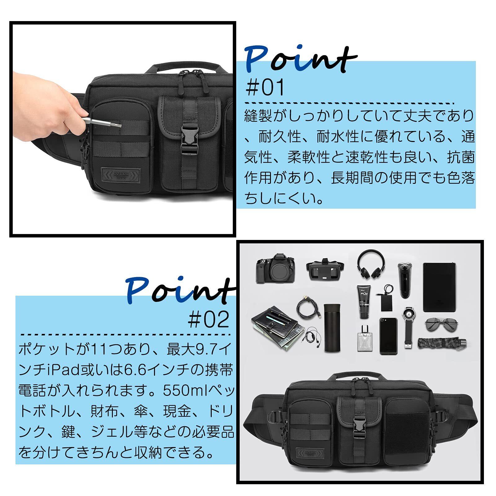 IDEASHOW 2WAYウエストバッグ 多機能ウエストポーチ 収納力 ボディバッグ 11ポケット ベルトバッグ 旅行バッグ 調節可能ベルト 小分け用フロントポケット ショルダーポーチ ワンショルダー ヒップバッグ バイク 釣り 旅行 ランニング 仕事 作業用 4L (ブラック)