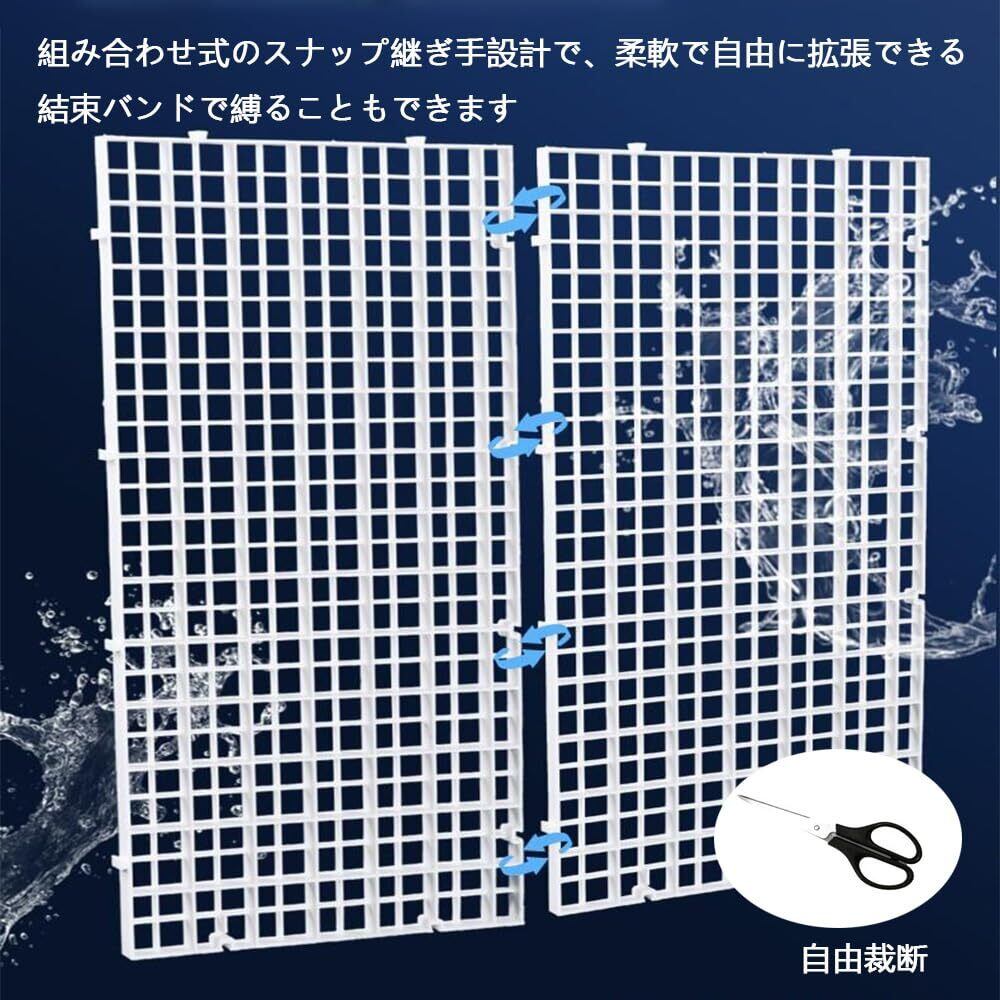 【商品仕様】パッケージ内容:タンクセパレーター×2枚+ゴム吸盤×2個,セパレーターサイズ:30×15cm,格子サイズ:約1×1cm、色:ホワイト。