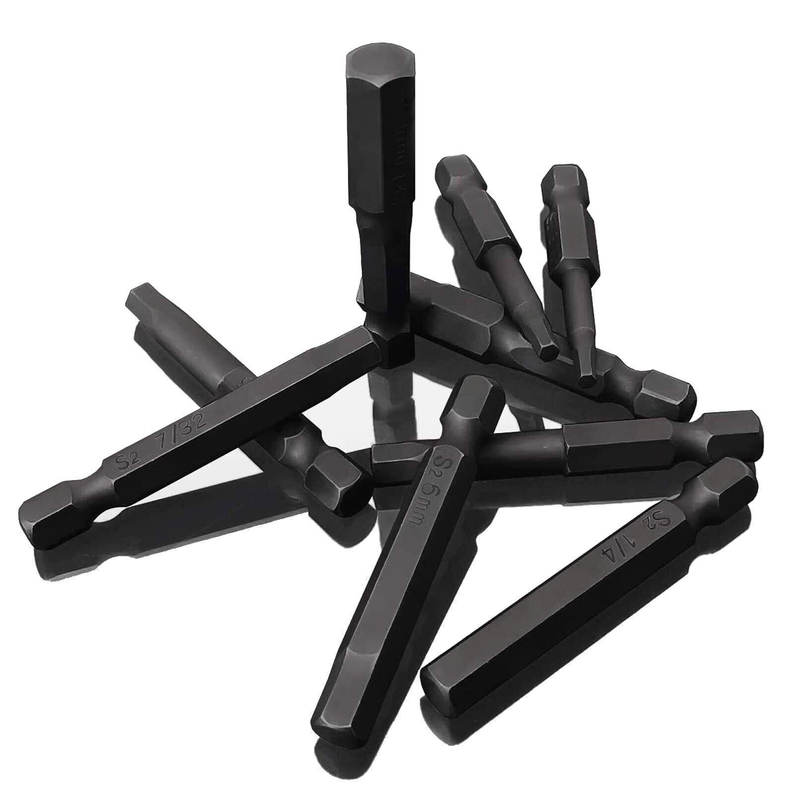 EUSTACE 10本入り 六角ビット ドライバービットセット 6.35mmシャンク 1.5mm~8mm 六角レンチビットセット S2鋼 電動ドライバービット 磁気 ねじ締めドリル用ヘキサゴンビット 50mm 長 黒 | hananoki