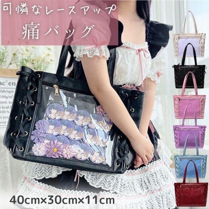 [ハルジオ] 痛バッグ 痛バ 痛バック トート トートバッグ 推し活バッグ 痛バック いたバック 推し活 オタ活 推し バッグ バック A4 可愛い 大容量 人気 いたばっぐ いたばっく いたば レースアップ リボン 黒 白 赤 紫 水色 ピンク | hananoki
