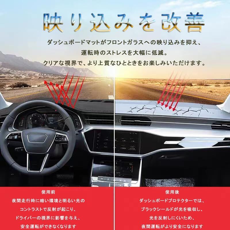 より、クリアな視界に:アトレー s7系 ダッシュボードマットがフロントガラスへの映り込みを低減、向こうからの光がダッシュボードに反射して目が見えなくなる危険を防ぎます、運転時ストレスを減らし、車内をより上質な空間へと改善。