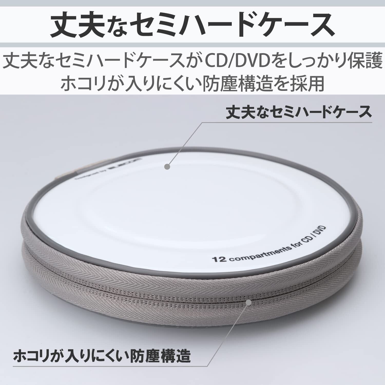 エレコム DVD CDケース セミハード ファスナー付 12枚収納 ホワイト CCD-H12WH
