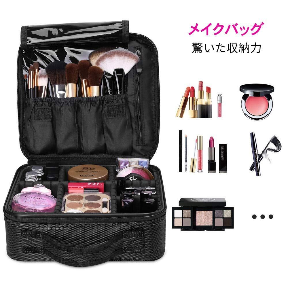 プロ用 メイクボックス Luxspire コスメボックス メイクブラシバッグ 化粧ポーチ コスメポーチ メイクポーチ 仕切り 持ち運び 防塵 收納抜群 置き方調整可能 通勤・出張・旅行用 機能的收納抜群 大容量 置き方が調整できる 衝撃吸収 化粧品収納 収納ケース 大型 母の日 Black | hananoki