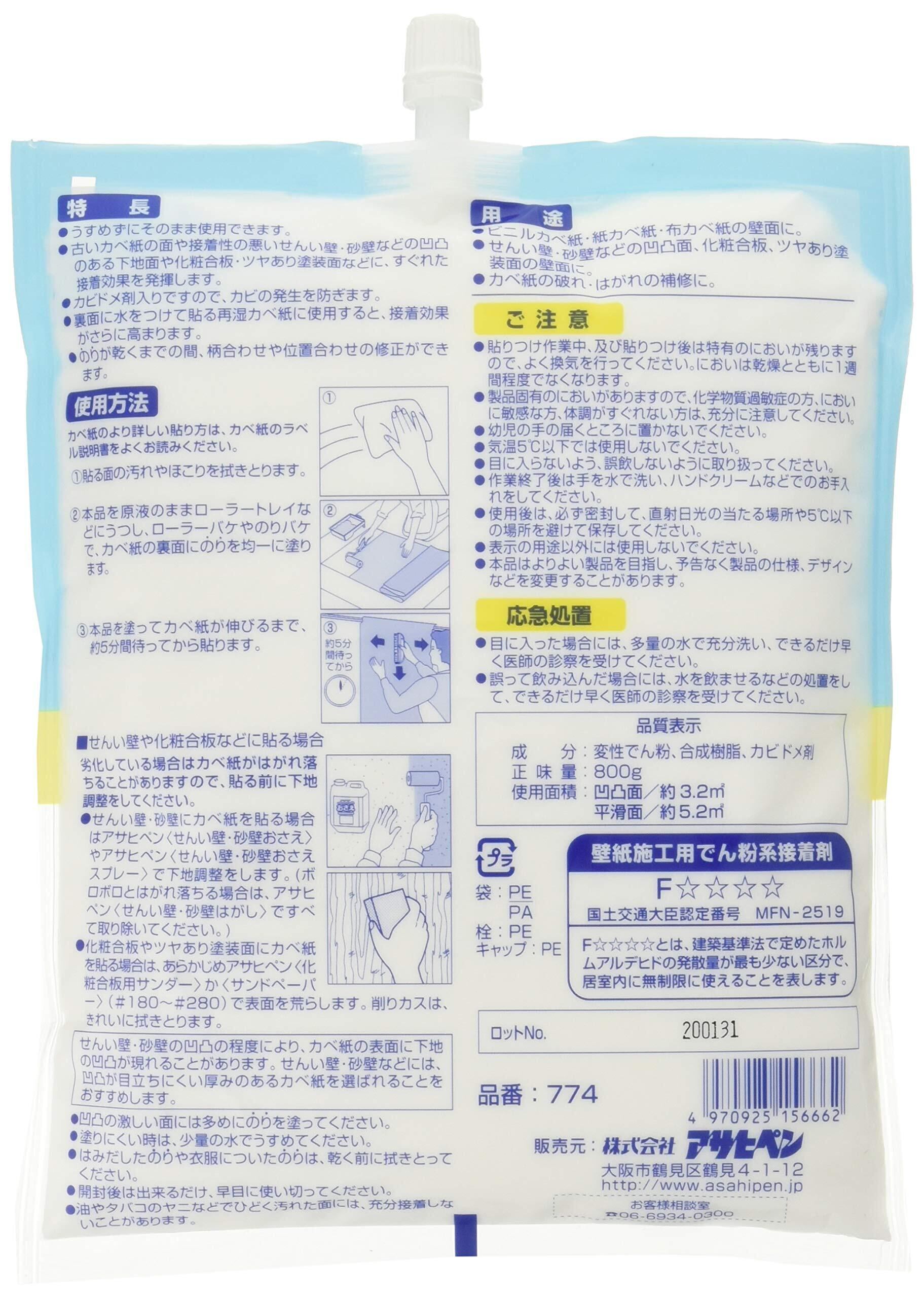 アサヒペン 壁紙用 強力タイプ カベ紙用のり 800g No.774 強力な接着効果 水でうすめずそのまま使える カビドメ剤配合 シックハウス対策品 日本製
