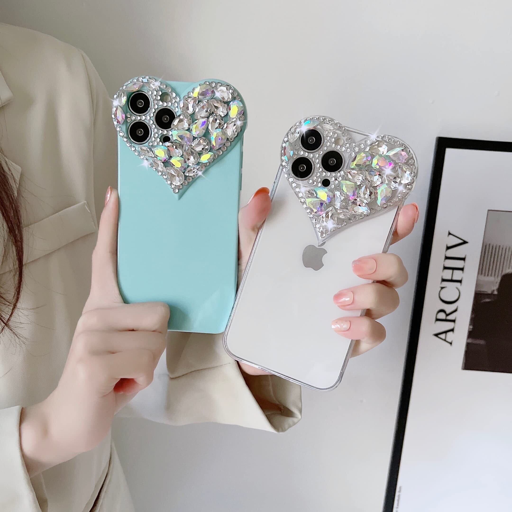CrazyLemon 適用 iPhone 7 / 8 / SE 第二世代 ケース おしゃれ かわいい ハート デザイン キラキラ ラインストーン 付き カメラ 保護 ソフト シリコーン ケース (for iPhone 7 / 8 / SE 2020 Case Luxury) - クリア | hananoki