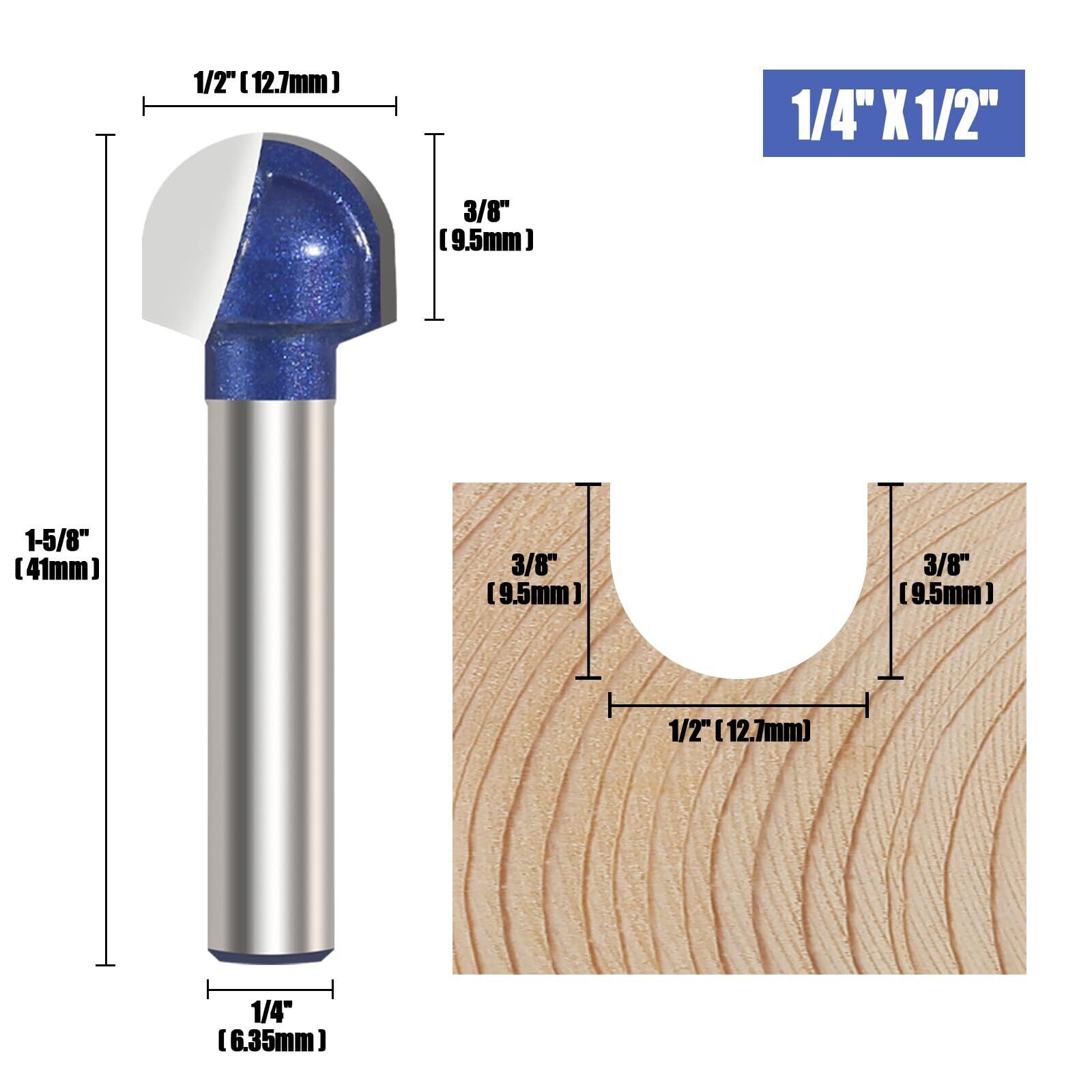 Vearter 4本組 U溝ビット 6.35mmシャンク 超硬コーブボックス ルータービット 6/8/9.5/12.7mm 切削直径 凹状面取り切削工具 DIY木工ツール 電動トリマー用ビット ルータービット木工用