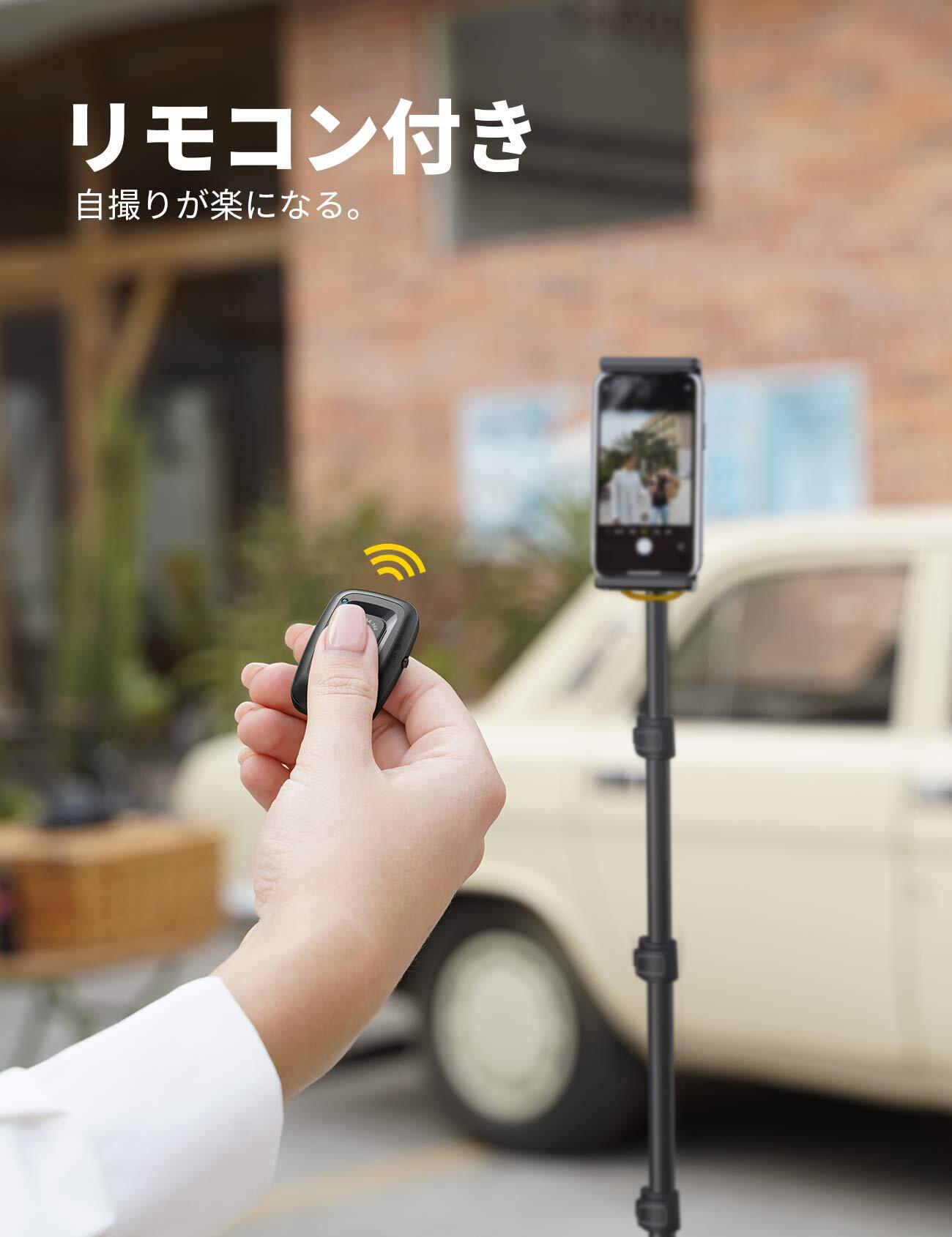 【携帯便利&Bluetoothリモコン付き】折り畳み式ですので、コンパクトに収めることができます。収納後長さは42.5cm、広さは7cm、重さは0.75kgです。収納袋がついているため持ち運びやすいです。また、Bluetoothリモコンが付属して、一人でも撮影ができます。旅行に大便利。