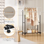 【高耐荷重、サイズ】:スチール製なのでとても頑丈で、耐荷45kgしっかり安定しています。より多くの衣類を収納できる2本竿仕様。サイズ: 幅141×奥行43.5×高さ160CM