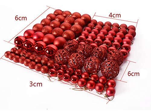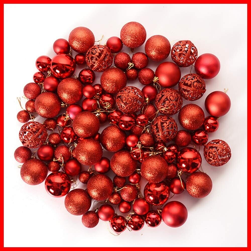E-Fly クリスマス オーナメント 豪華セット 100個 クリスマスツリー 飾り付け 飾り 華やか おしゃれ クリスマスパーティー きれい ゴールド ボールクリスマス DIY デコレーション 3-7cm (レッド) | hananoki
