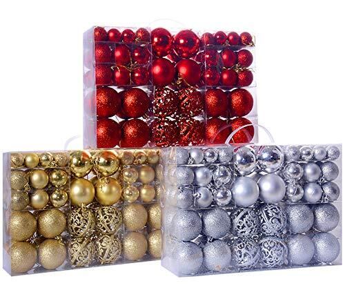 E-Fly クリスマス オーナメント 豪華セット 100個 クリスマスツリー 飾り付け 飾り 華やか おしゃれ クリスマスパーティー きれい ゴールド ボールクリスマス DIY デコレーション 3-7cm (レッド)