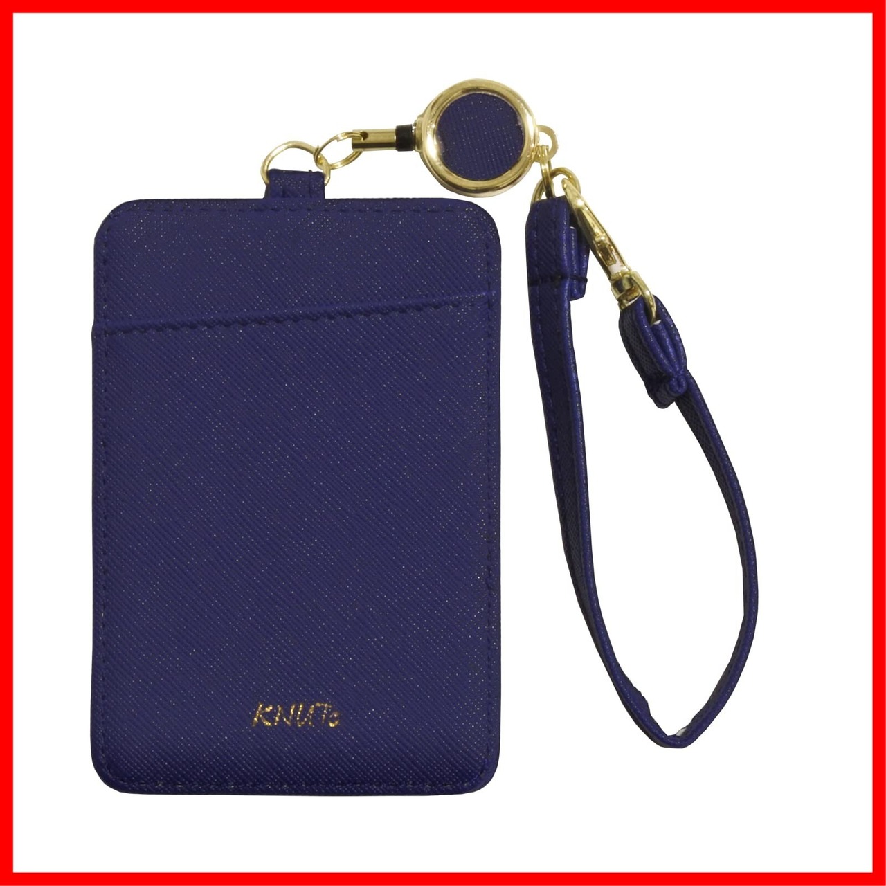 KNUTe リール付きパスケース 上部取付タイプ ネイビー ストラップ付 IDカードホルダー リール IDカードケース 2枚収納薄い メンズ ICカード 定期入れ