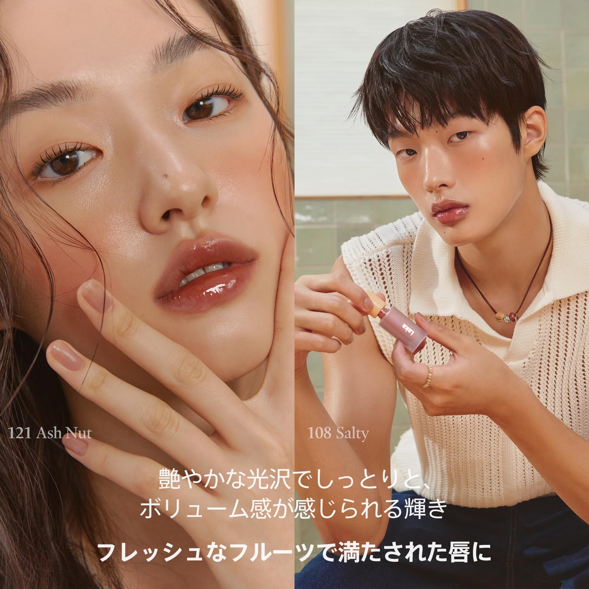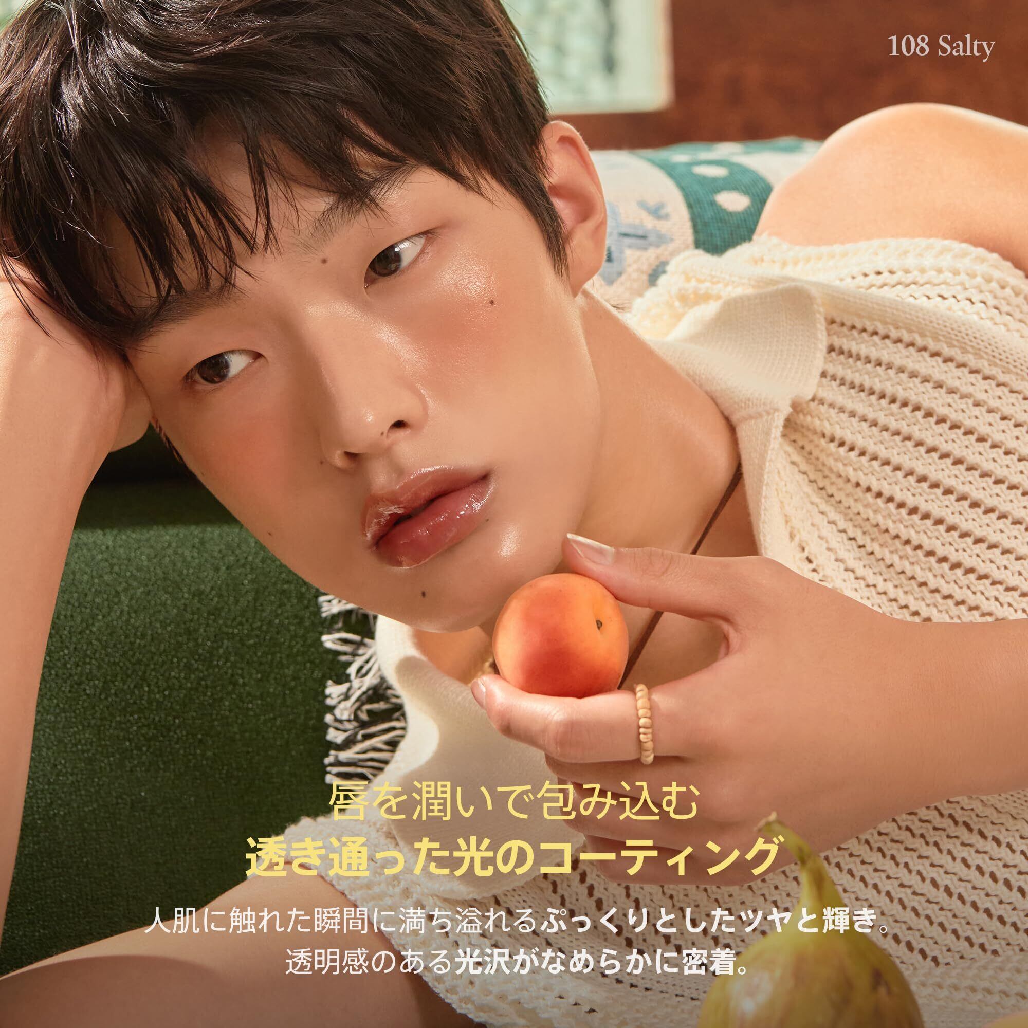 【高保湿&高光沢テクスチャー】水のようにサラッとした軽やかなつけ心地。唇の温度に反応してふっくらと潤い、透明感のある光沢をもたらします。
