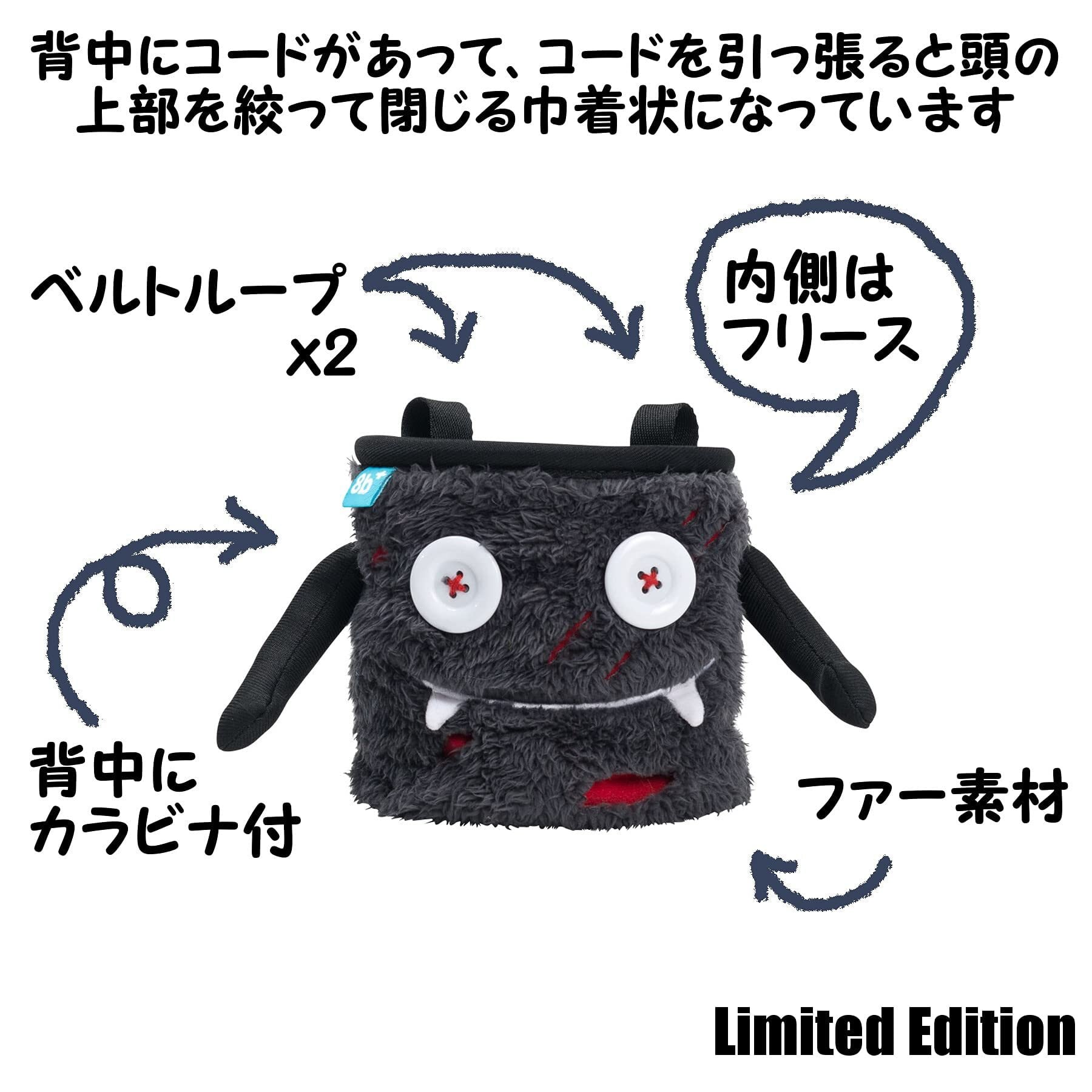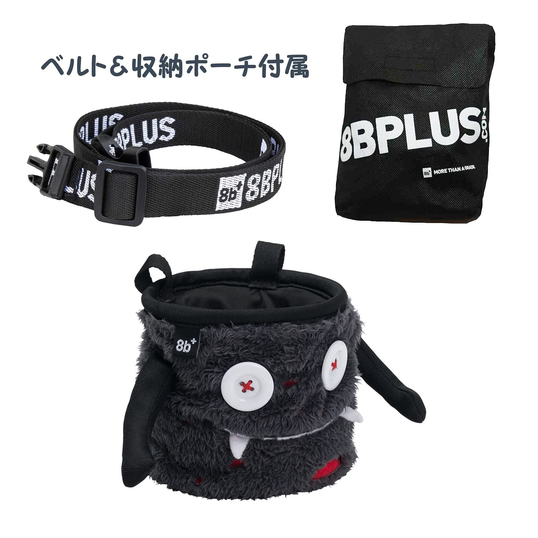 8BPLUS ボルダリング ロッククライミング チョークバッグ 開口部12.5cm [ DUNCAN ] 傷はあるけどハッピーな奴 ダンカン 上部巾着閉じ ベルト&カラビナ付きブラック 8B+2101033 【正規品】 | hananoki