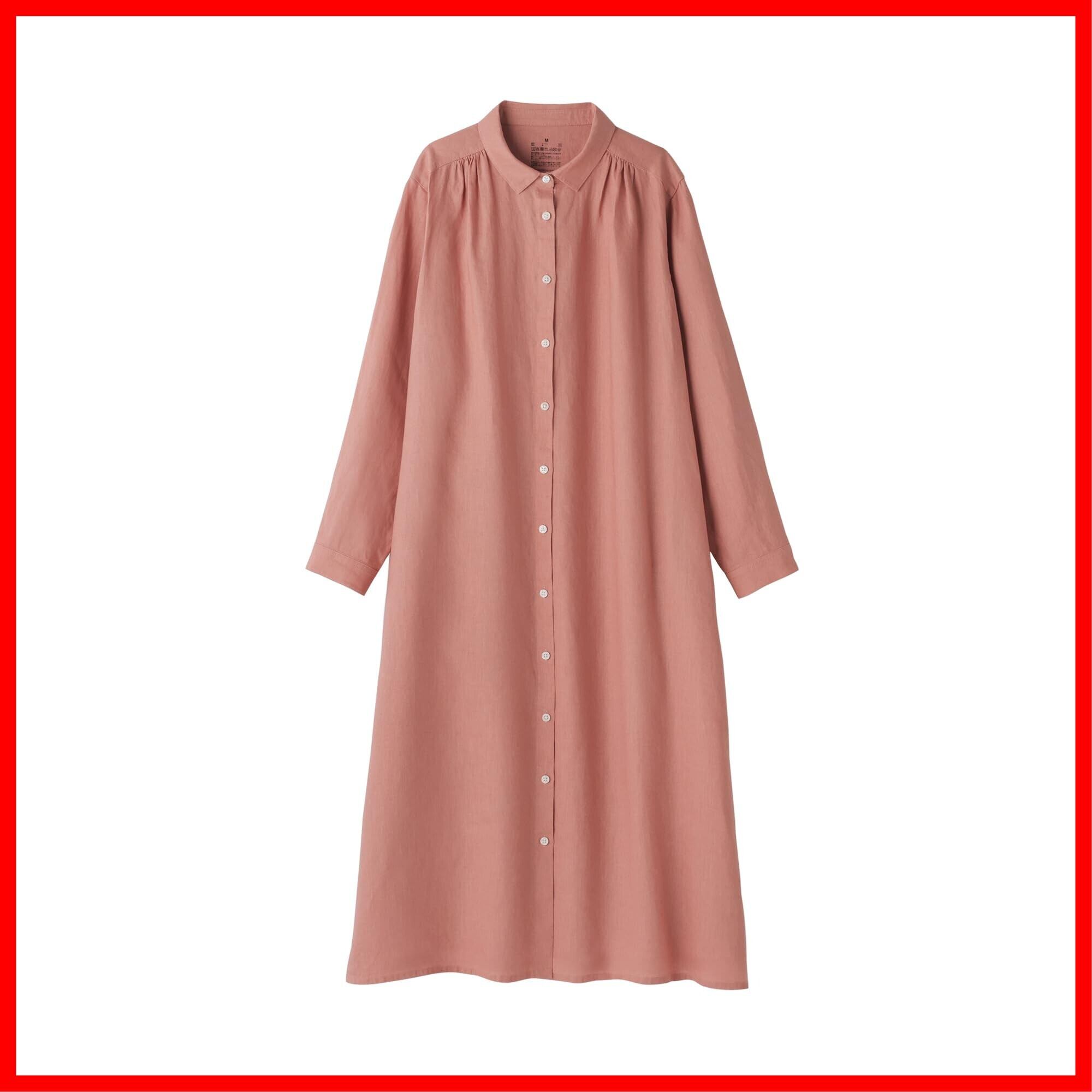 無印良品 ワンピース婦人 リネン 洗いざらし長袖シャツワンピースレディース