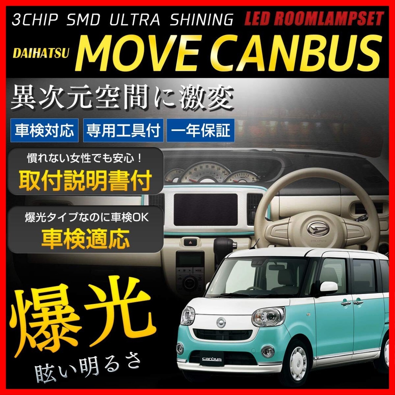 ダイハツ ムーヴ キャンバス 車種専用 設計 LED ルームランプセット 【専用工具・取説付】【車検対応】カスタム パーツ アクセサリー ドレスアップ MOVE CANBUS(LA800 / LA810)