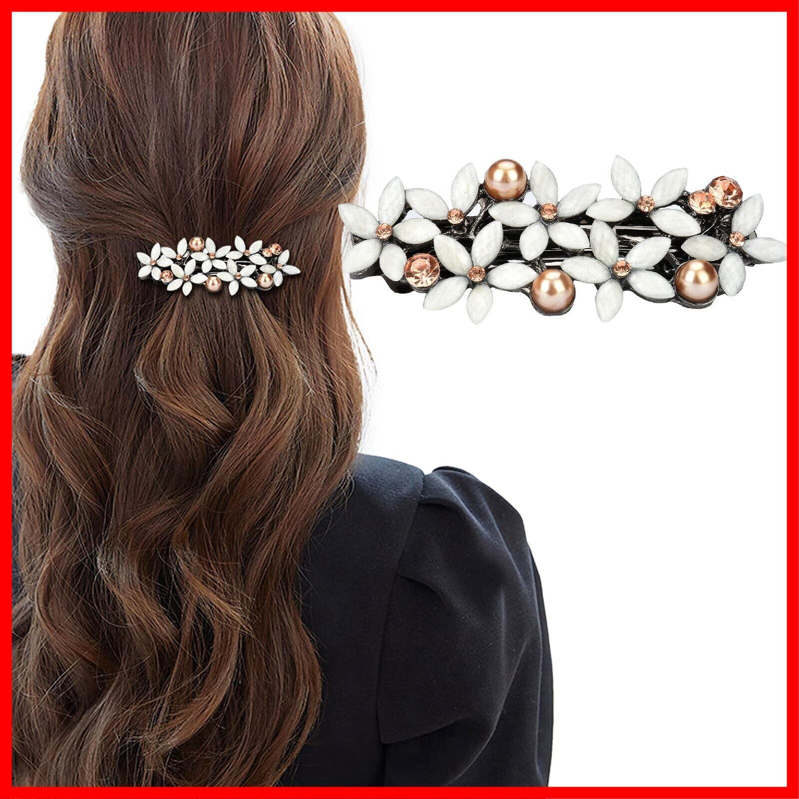 mefeny ヘアクリップ バレッタ パール お花 キラキラ 髪留め 髪飾り ヘアアクセサリー レディース 結婚式 パーティー 入学式 お呼ばれ 卒業式 (白)
