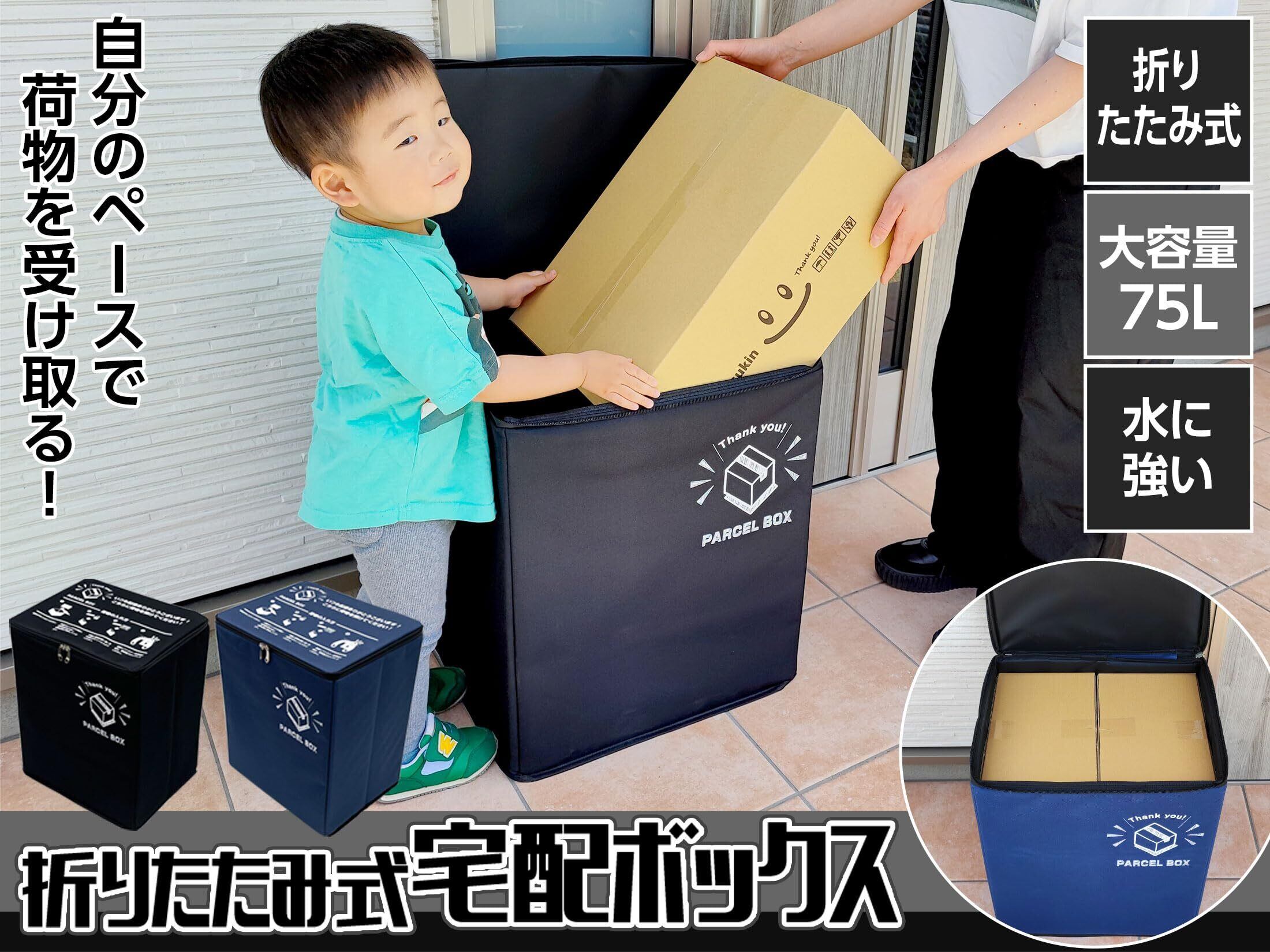 MTK 宅配ボックス 折りたたみ 大容量 75L 縦型 スリム 鍵付 ワイヤー付き ステッカー付き 防水 屋外 おしゃれ マンション アパート 一戸建て 置き配 OTB05 (ネイビー) | hananoki