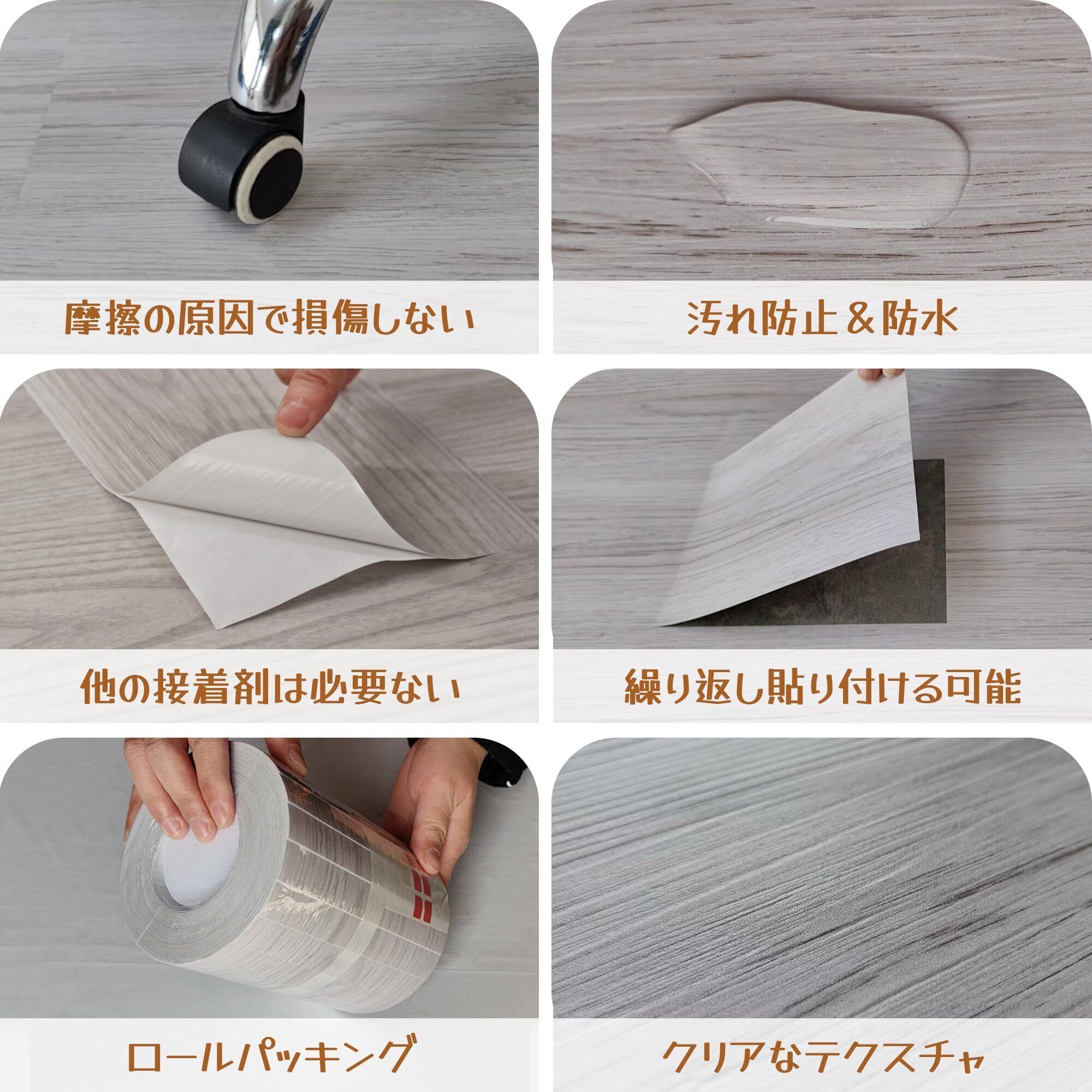 【色ロット差安定】===【お客様のご意見から色ロット差をアップしました】印刷色ロット差に耐えるPVC材質を開発しました。数百回数を試験してロット差の問題解決出来ましたが、ロット色差大きいの心配なくでご使用下さい。【ボロ床隠し】ザラザラの旧い床、少し凸凹のフロアタイルの上にも貼れますが、柔らかいPVC新素材から、カッターで寸法通りに切断しやすくて、角の所でもキレイ貼れます。